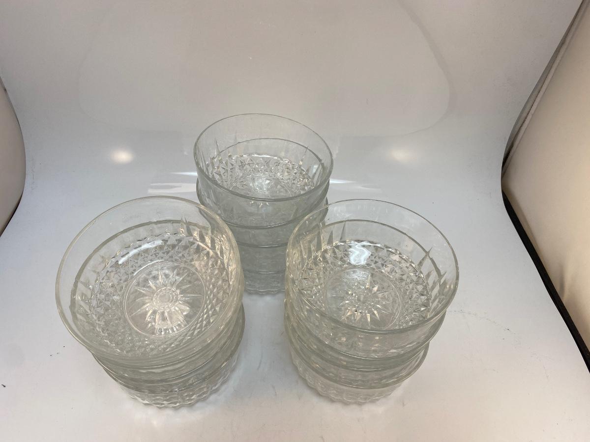 Set of 12 Arcoroc France USA Pressed Glass Salad Cereal Soup Bowls