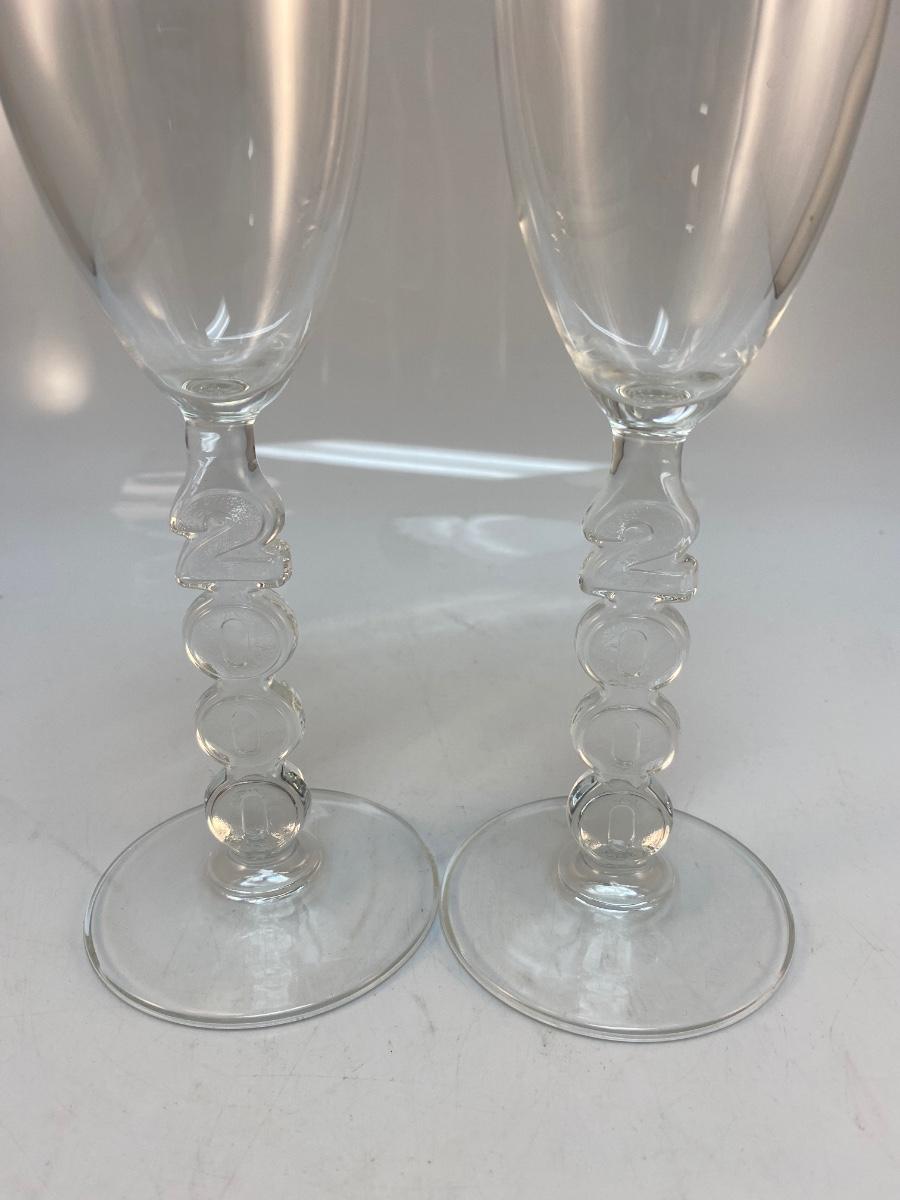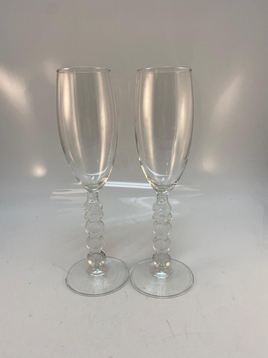 Pair of Millenium Year 2000 Stem Celebration Anniversary Champagne Glasses