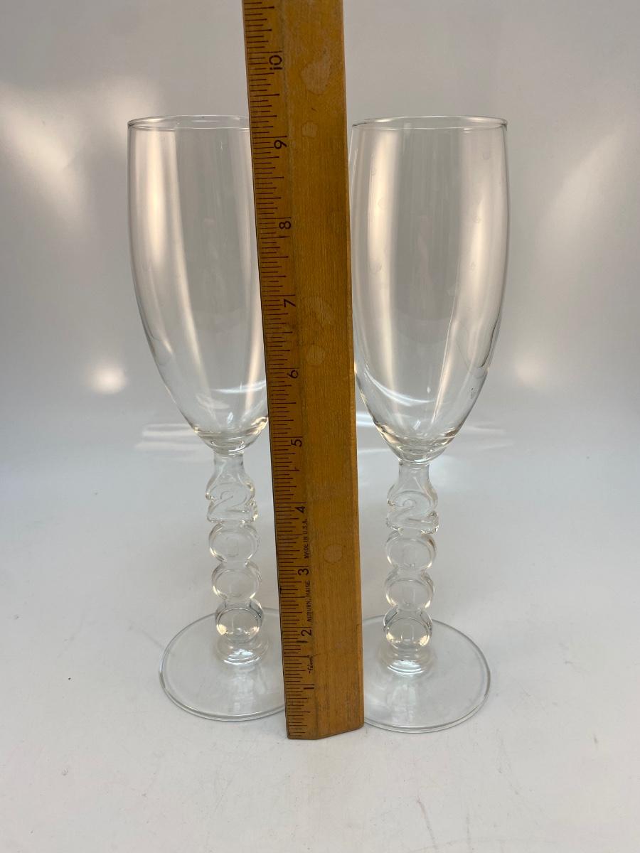 Pair of Millenium Year 2000 Stem Celebration Anniversary Champagne Glasses. In good condition. Great for anniversary gift or crafting.