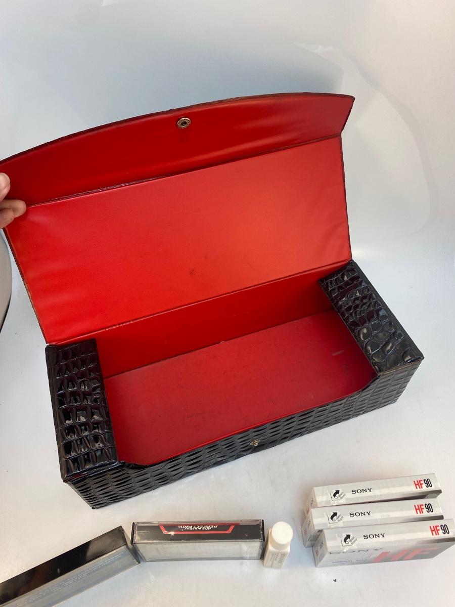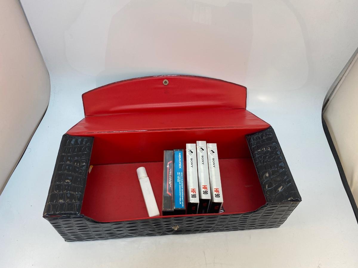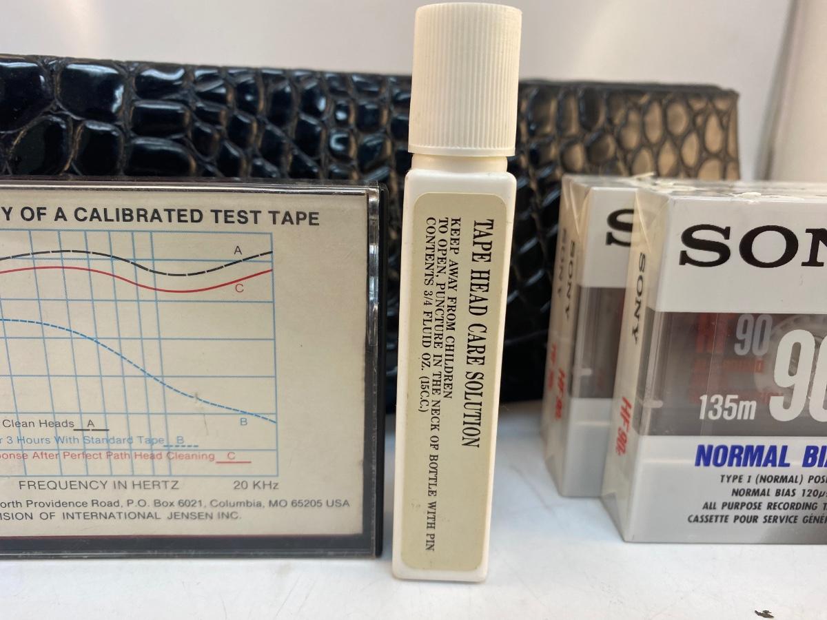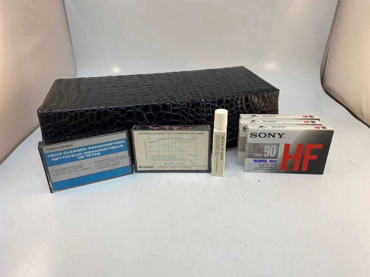 Cassette Tape Holder Case Blank Tapes Head Cleaners Lot. Unopened blank tapes, head cleaners and case. Good vintage conditions.
