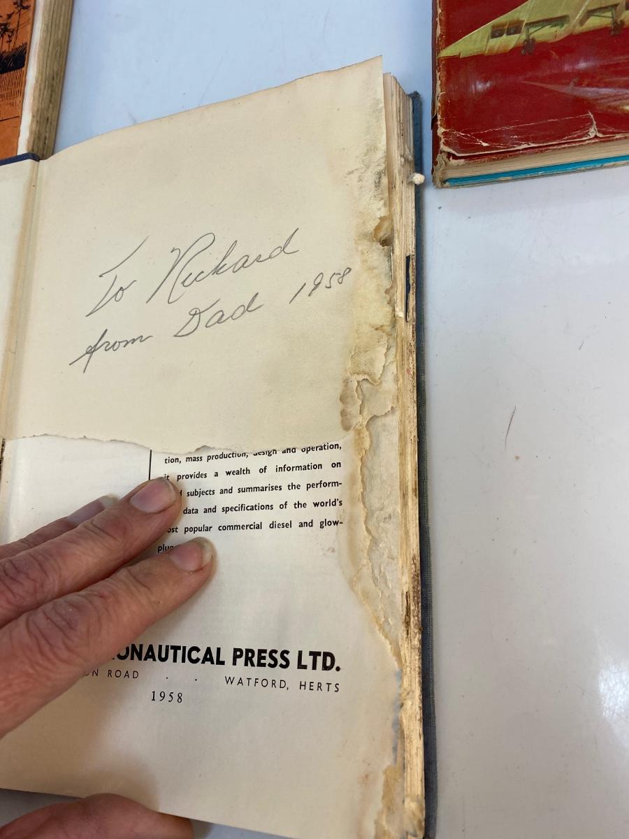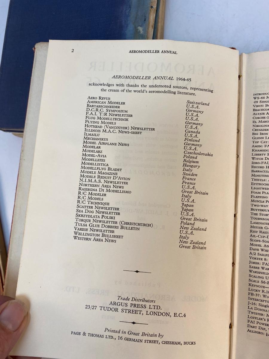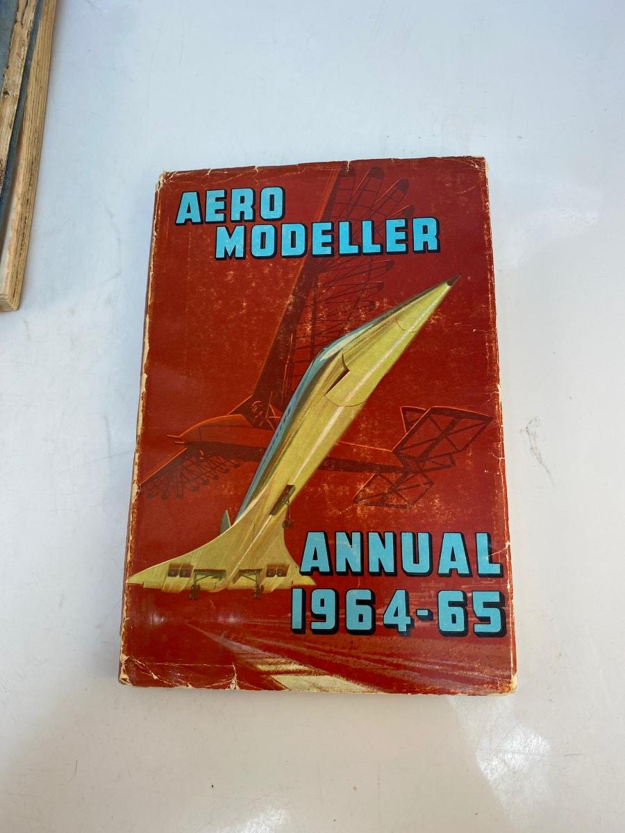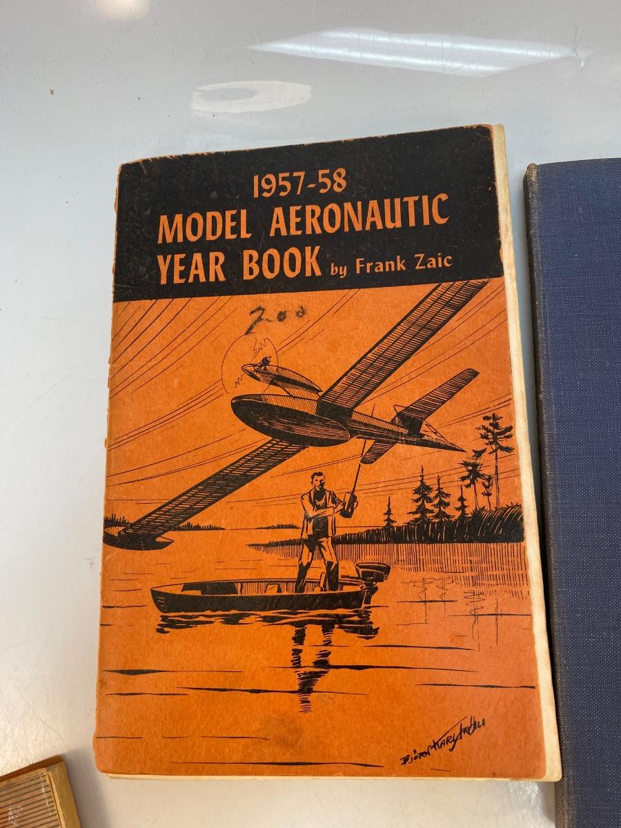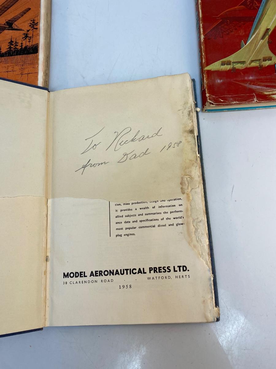 Lot of Vintage Model Aeronautics Annual Year Books Model Planes 1950s 1960s. In aged condition. The dark blue one has the most damage along the edge of first half of pages.