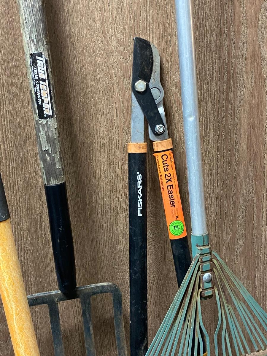 Garden Yard Hand Tool Lot Shovel Rakes Pitchfork Hoe Branch Cutters