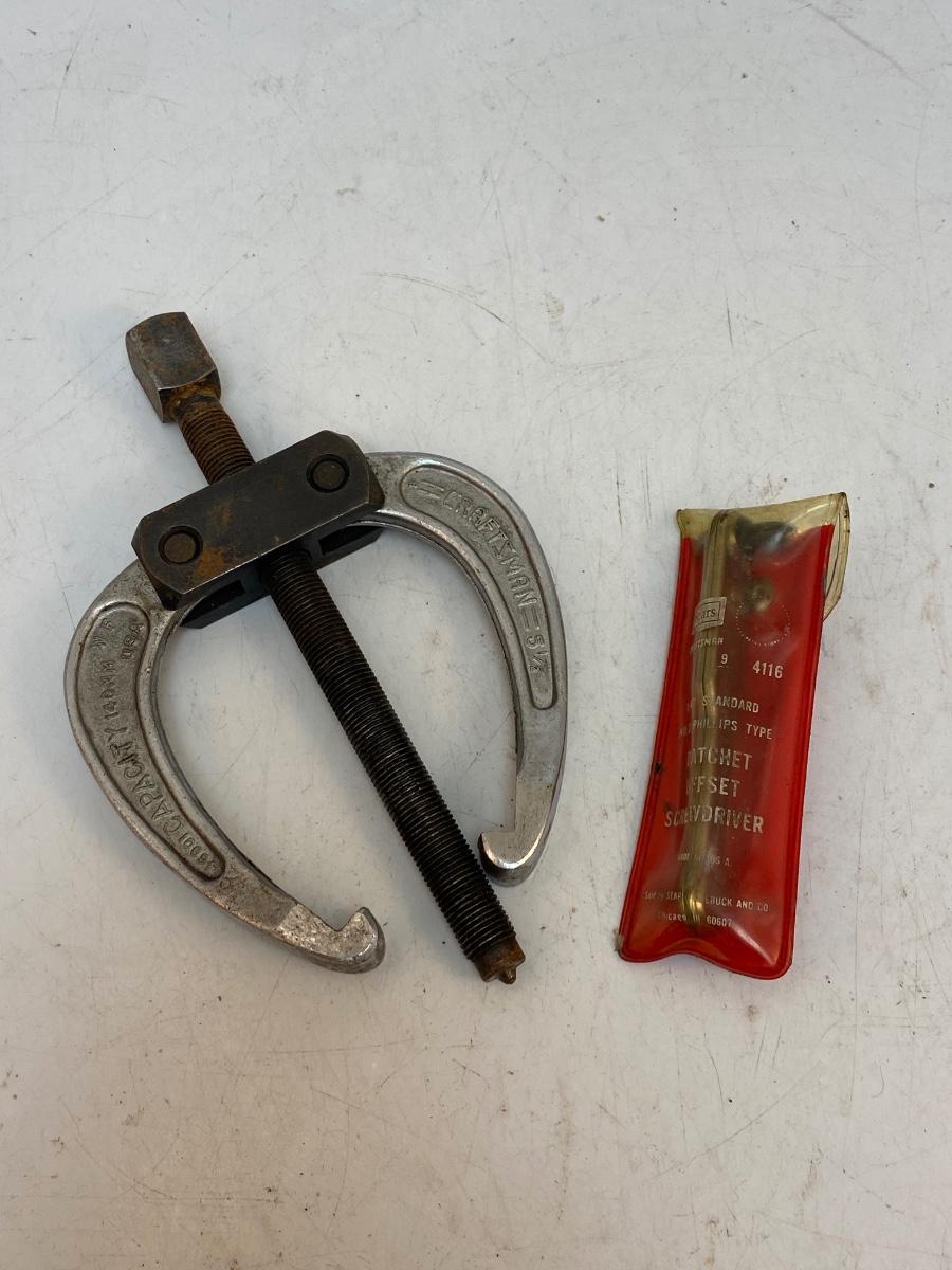 Craftsman Tools Ratchet Offset Screwdriver & 5.5 Gear Bearing Pulley Puller. Both in good used condition.
