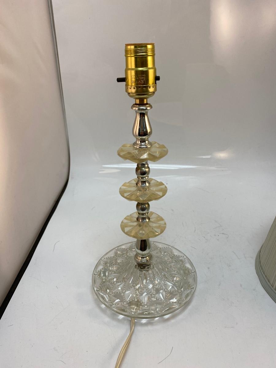 Vintage Shabby Chic Hollywood Glam Pressed Glass and Lucite Dresser Vanity Table Lamp