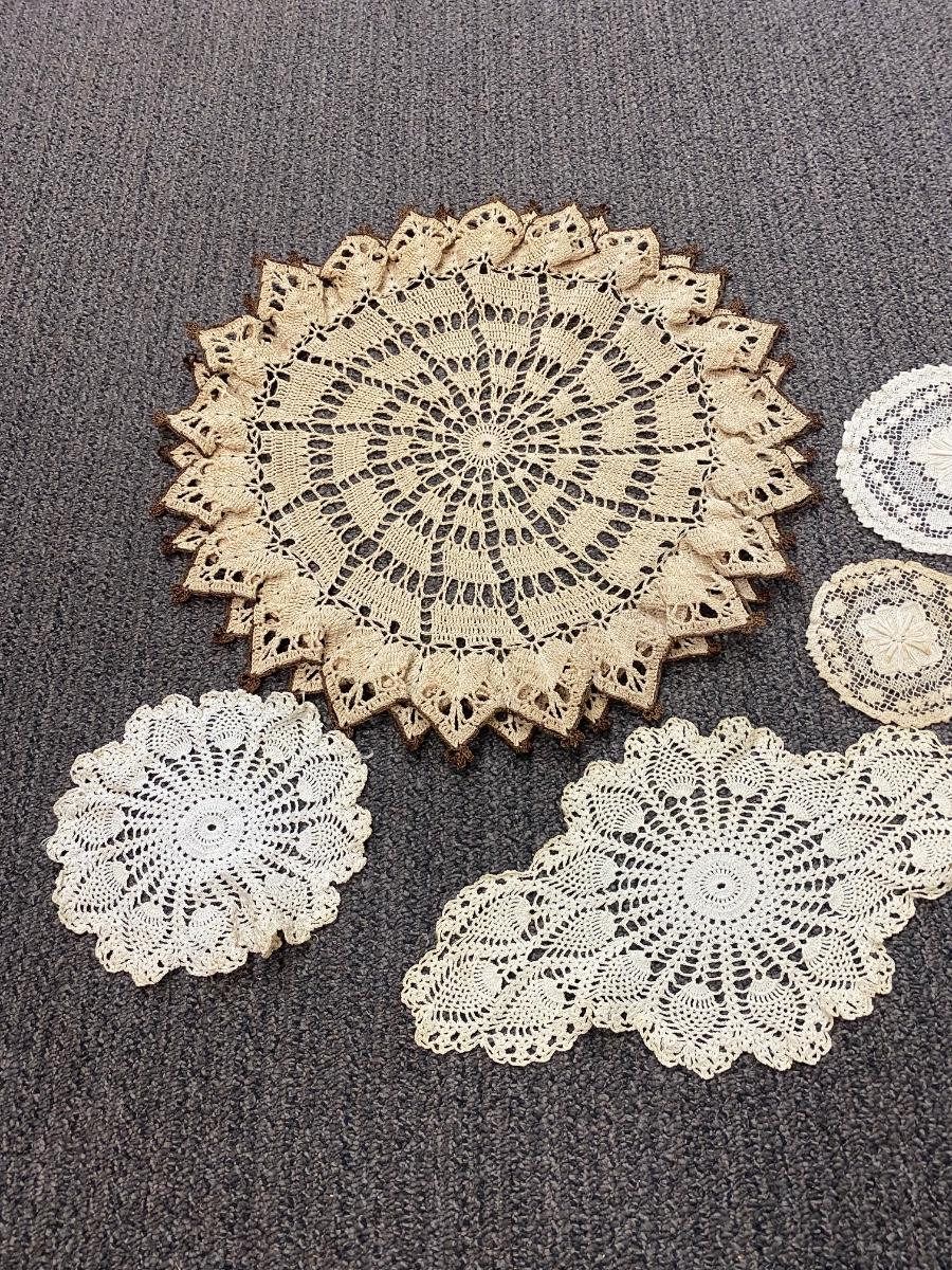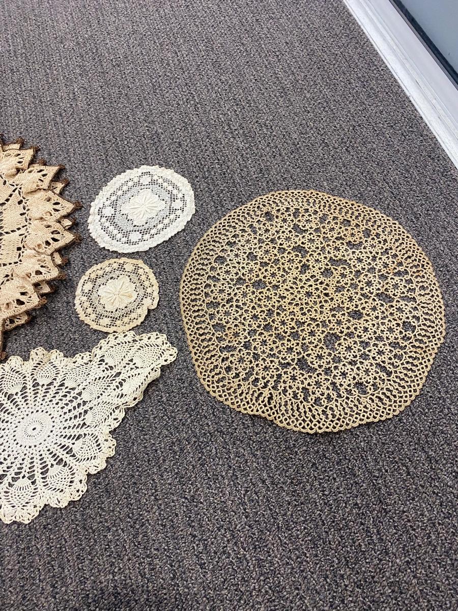 Lot of 6 Various Sized Crochet Knit Tatted Table Doilies