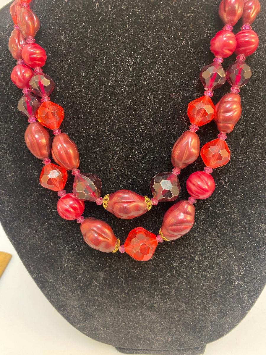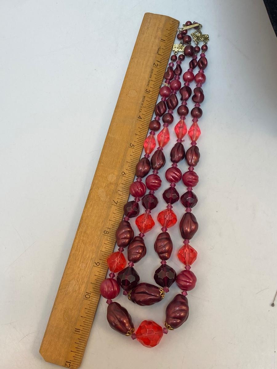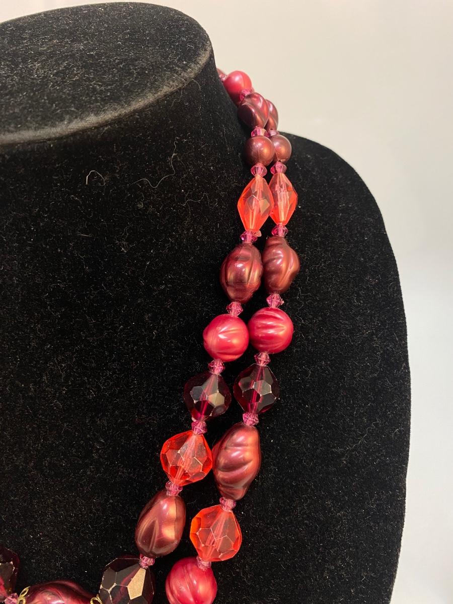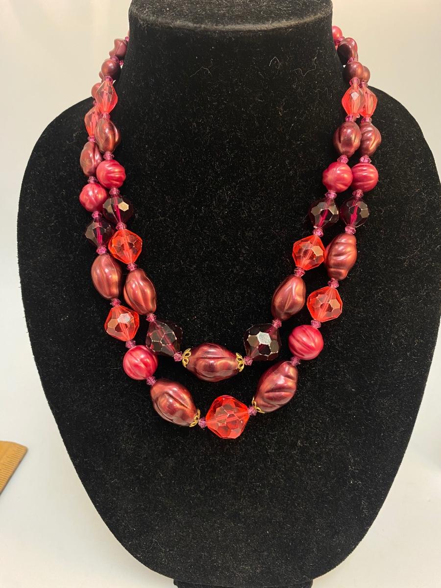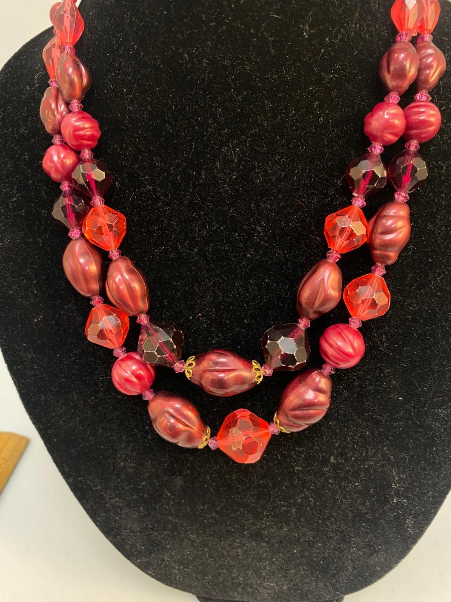 Vintage Maroon Pink Red Beaded Double Strand Necklace