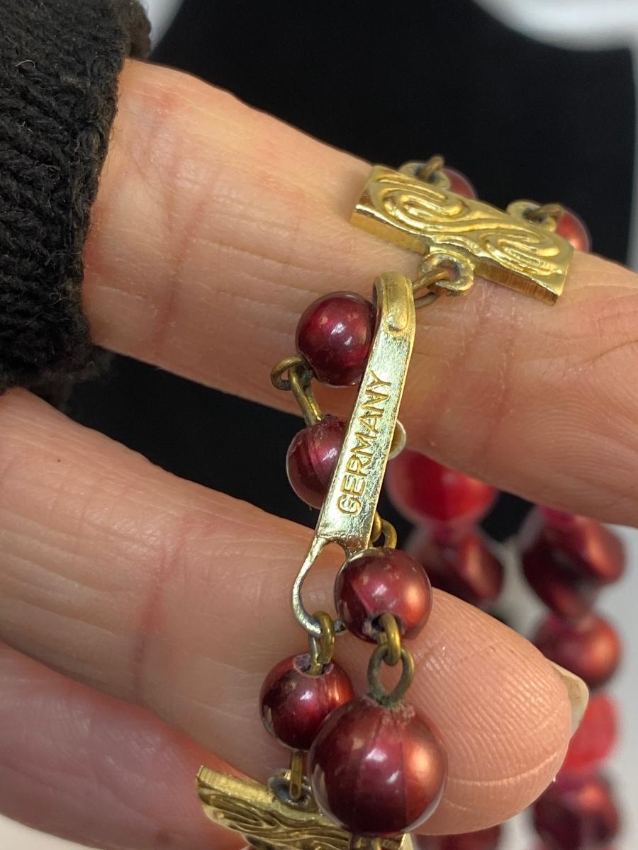 Vintage Maroon Pink Red Beaded Double Strand Necklace. Good vintage condition. Made in Germany.