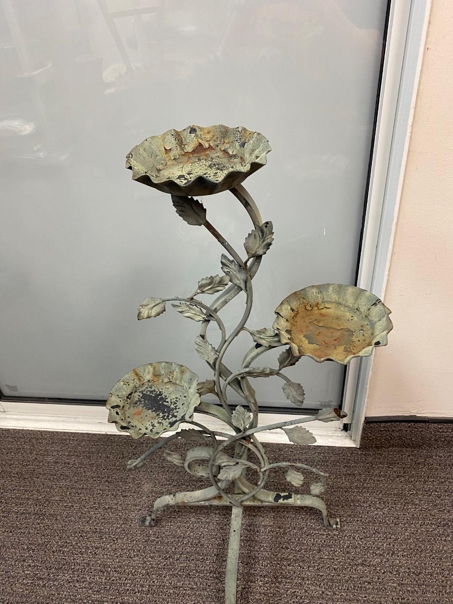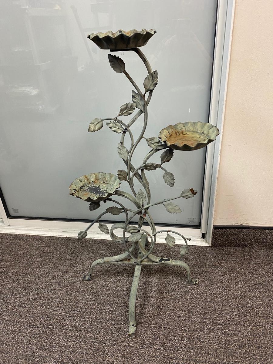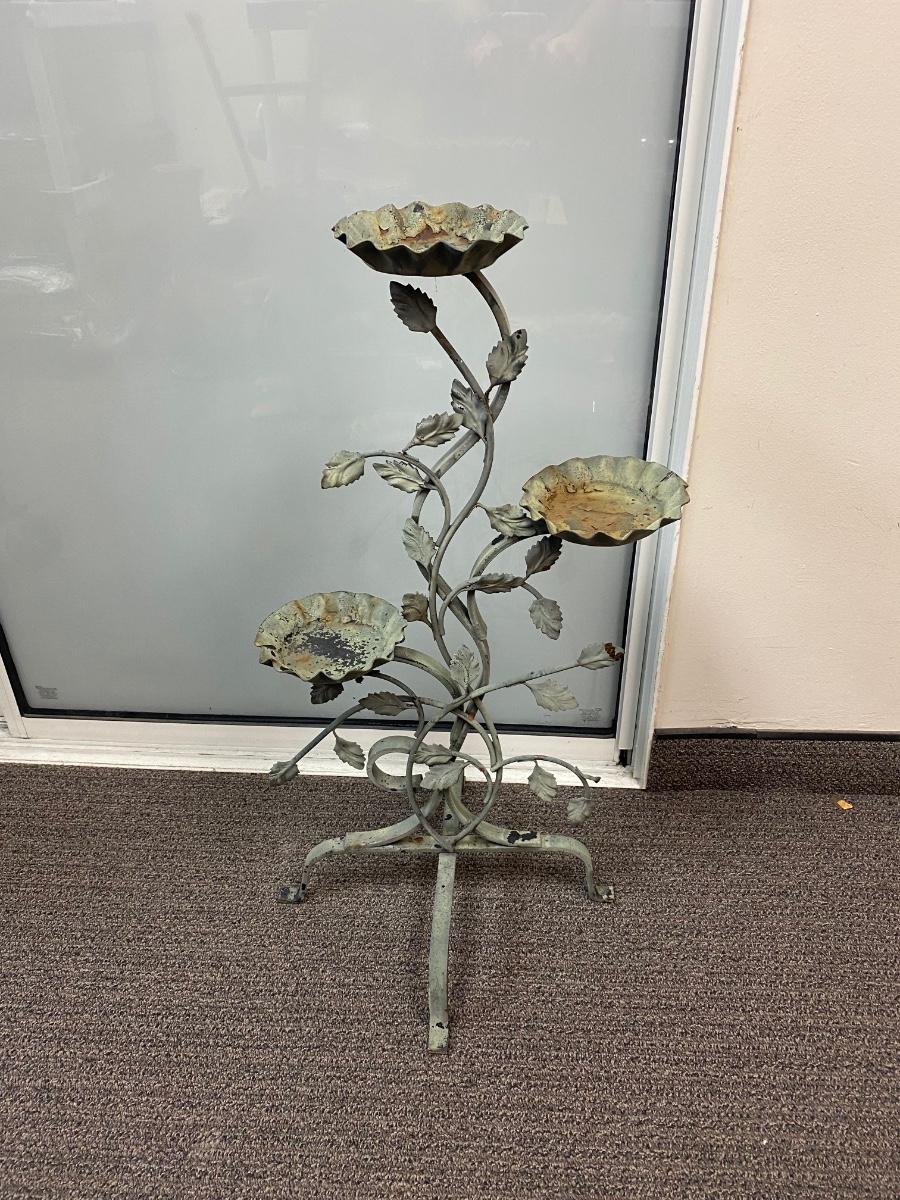 Vintage Three Tier Metal Yard Art Planter Pot Stand Candle Holder