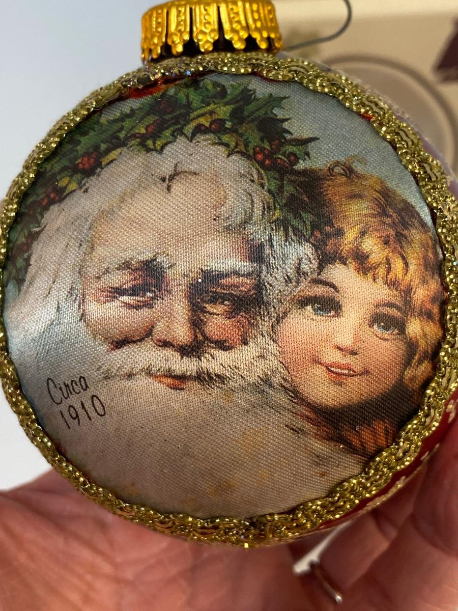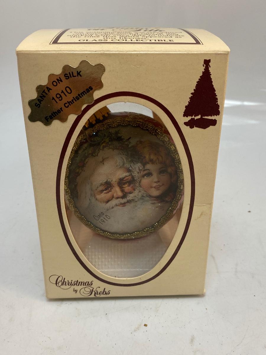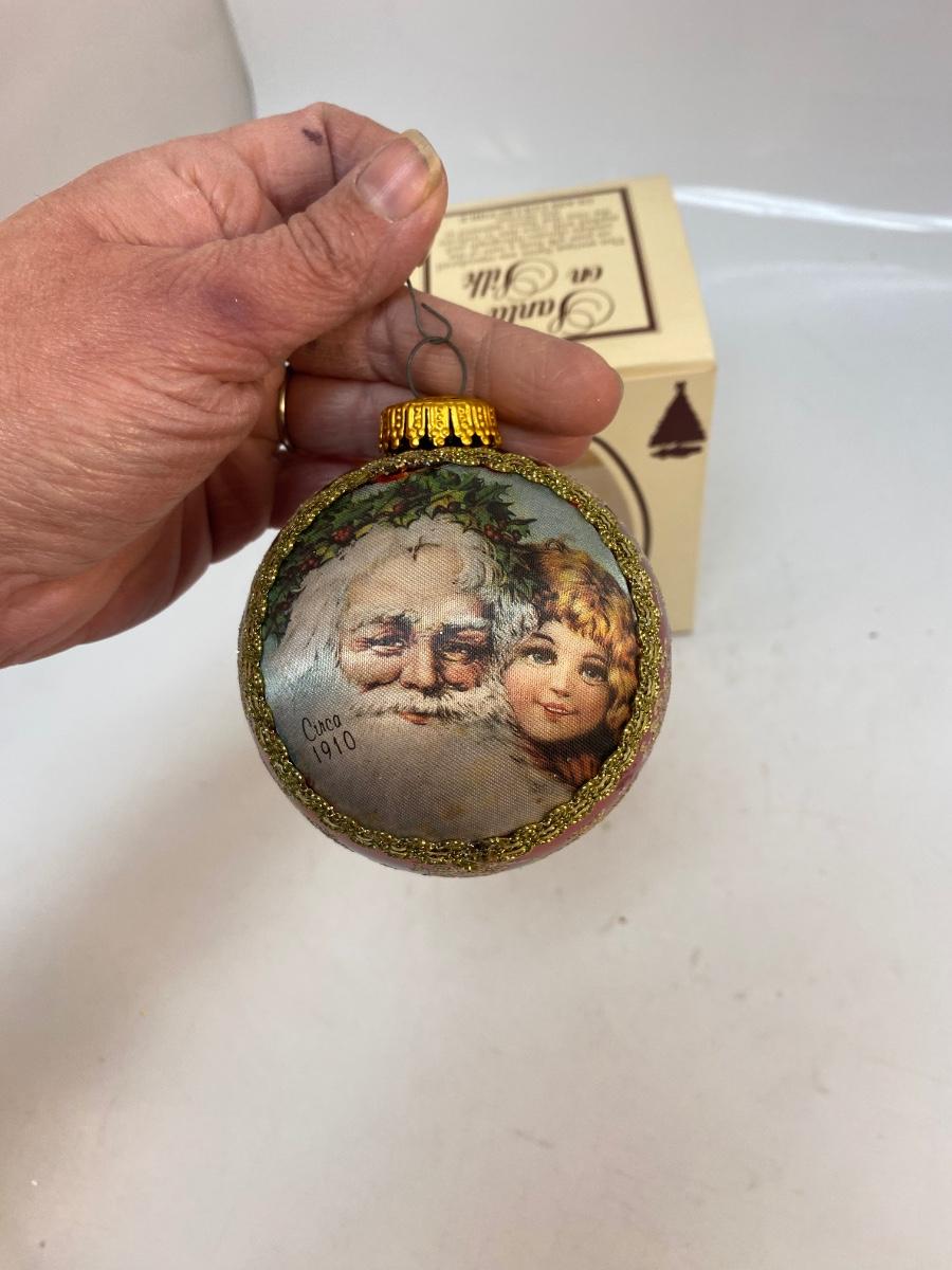 Vintage Santa on Silk Christmas Tree Holiday Ornament with Box