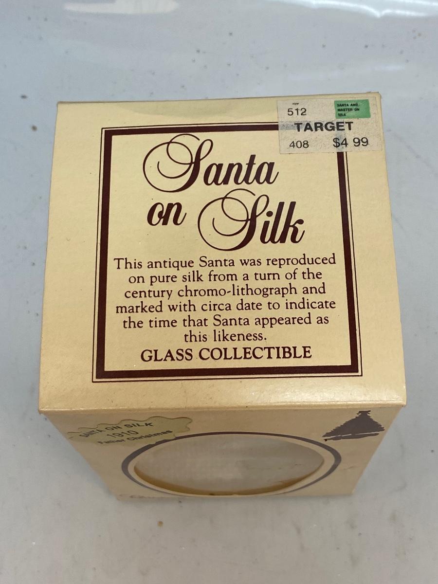 Vintage Santa on Silk Christmas Tree Holiday Ornament with Box. In good condition.