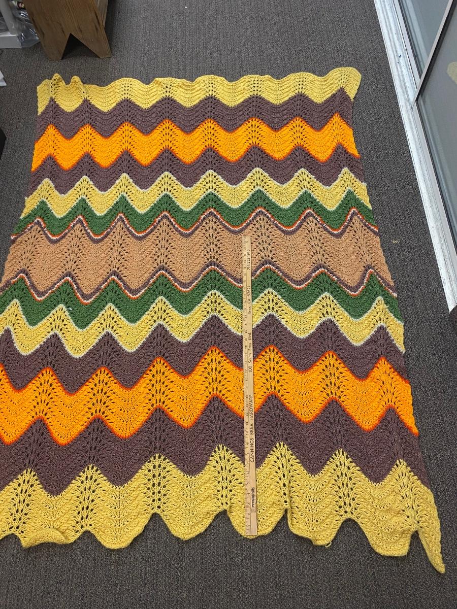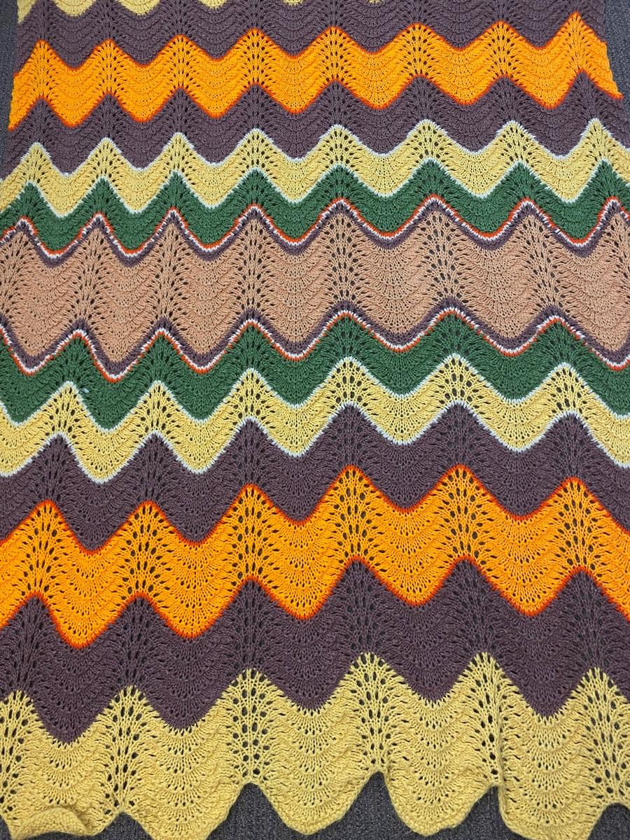 Vintage Zig Zag Crochet Throw Blanket Afghan