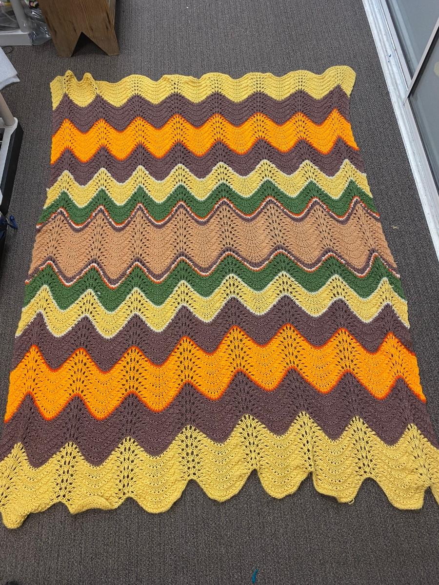 Vintage Zig Zag Crochet Throw Blanket Afghan. In good condition. About 4'x6' size.