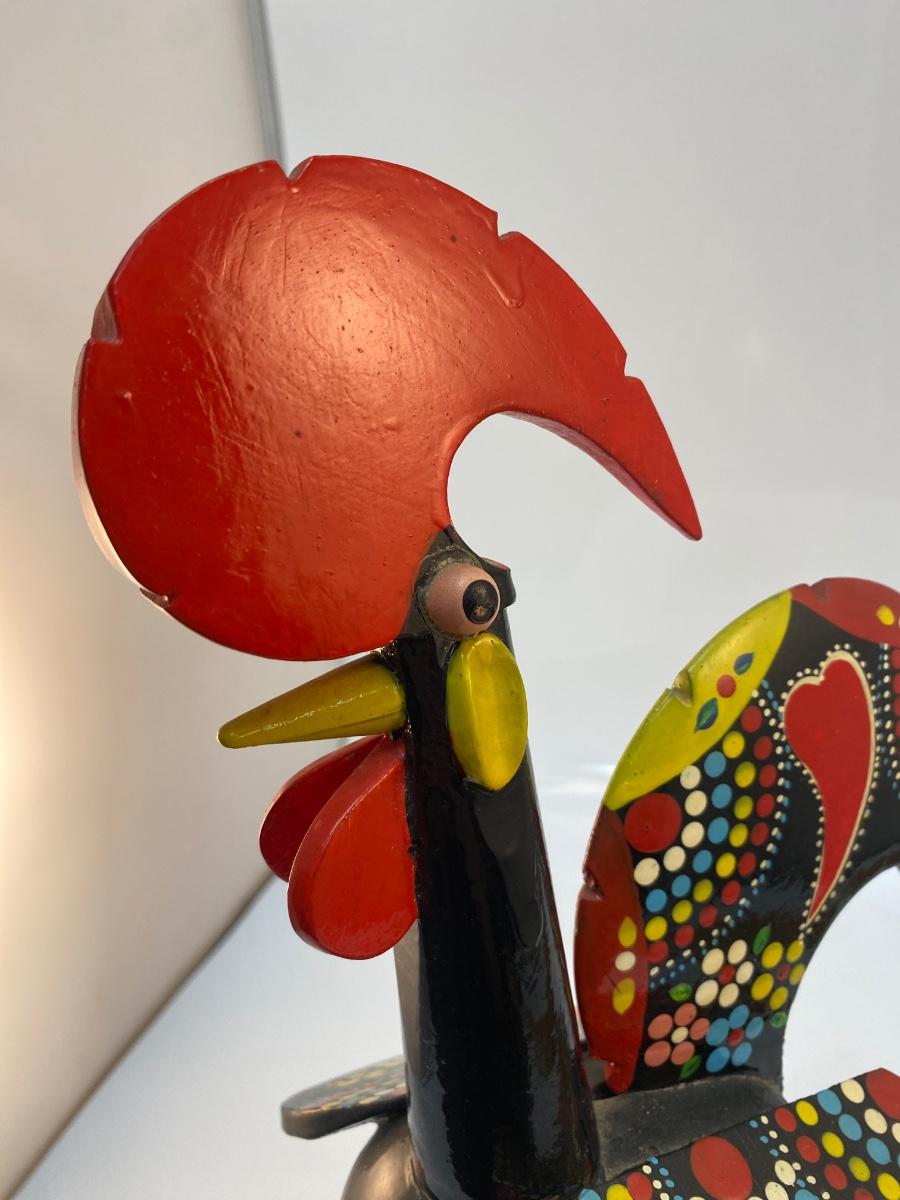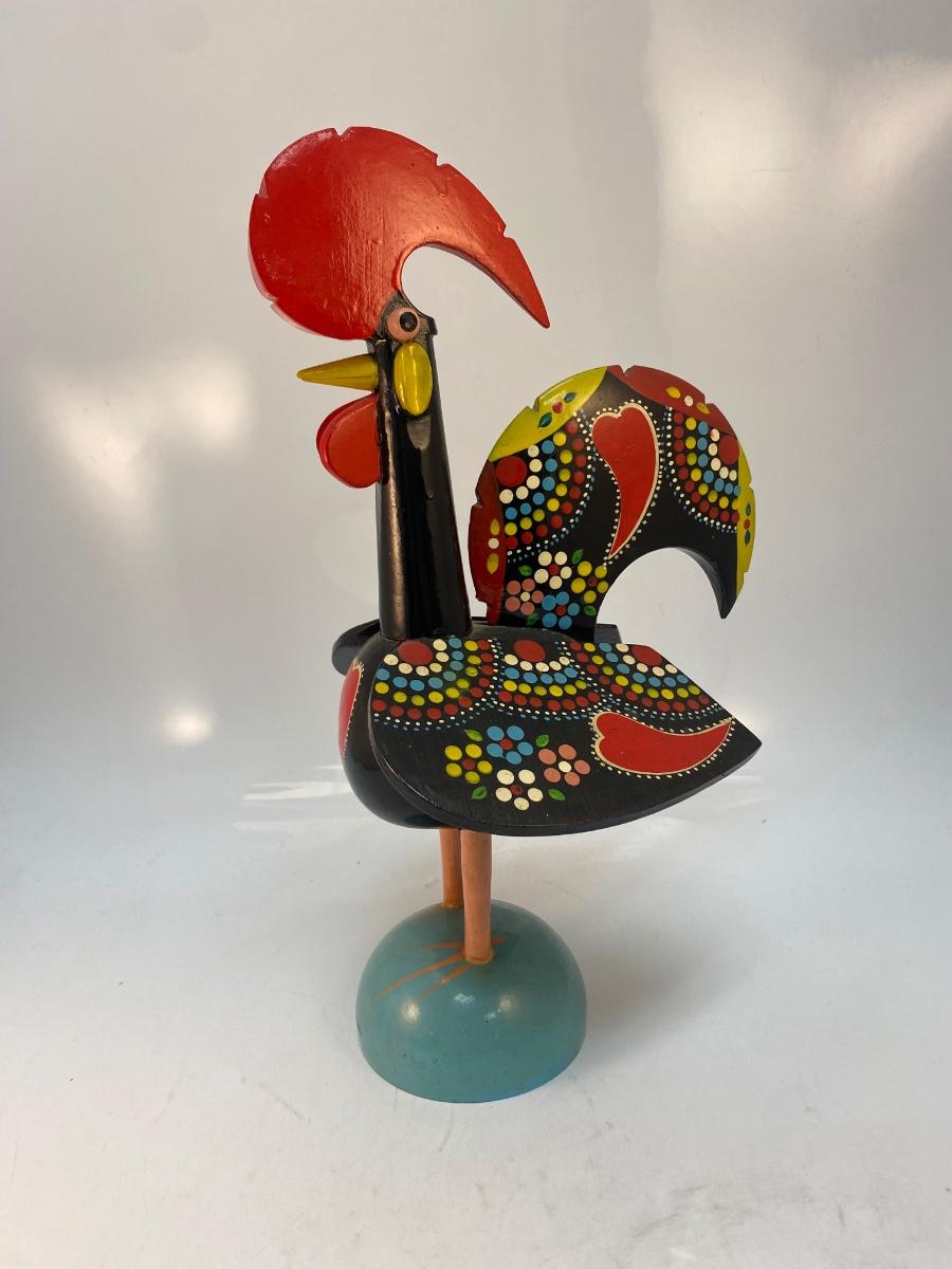 Vintage Made in Portugal Colorfully Painted Wood Rooster Music Box Figurine
