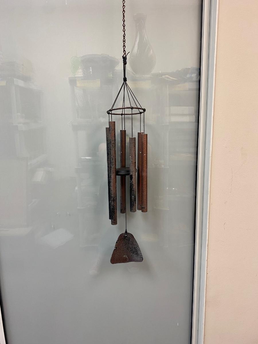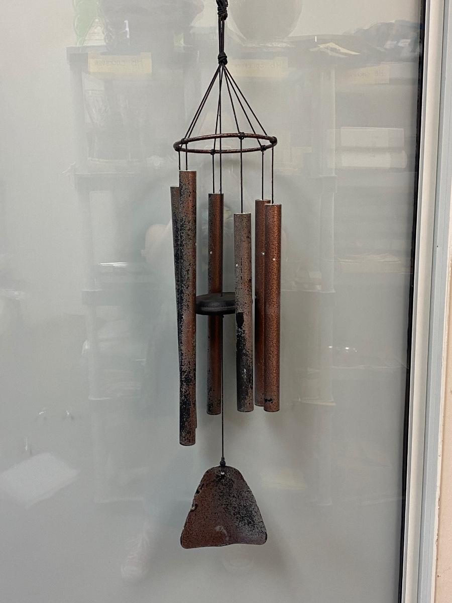 Long Weathered Metal Wind Chimes. In good, weathered condition. Sound nice.