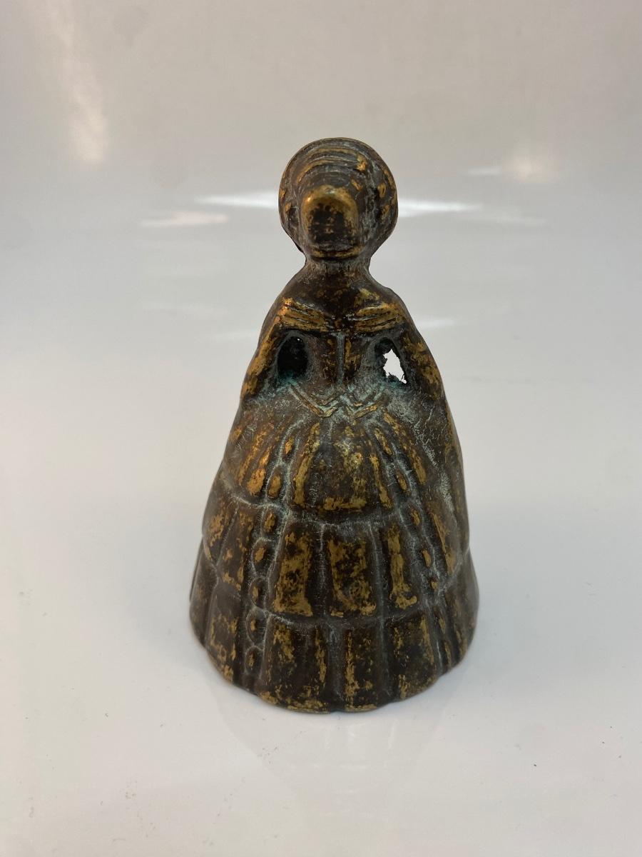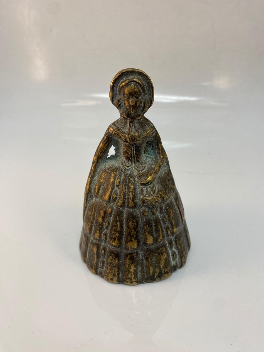 Vintage Antique Brass Figural Bell Fancy Dress Woman