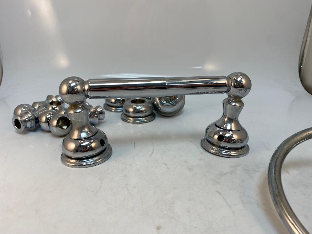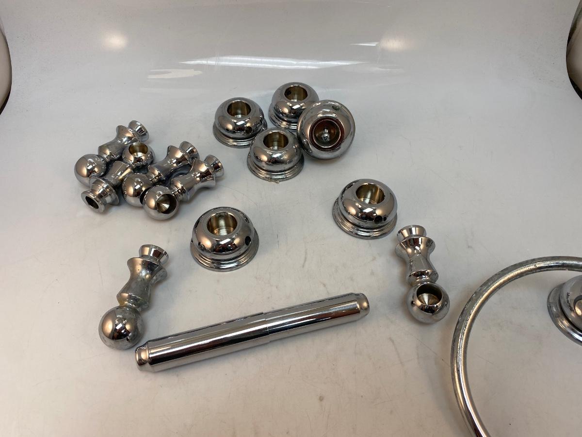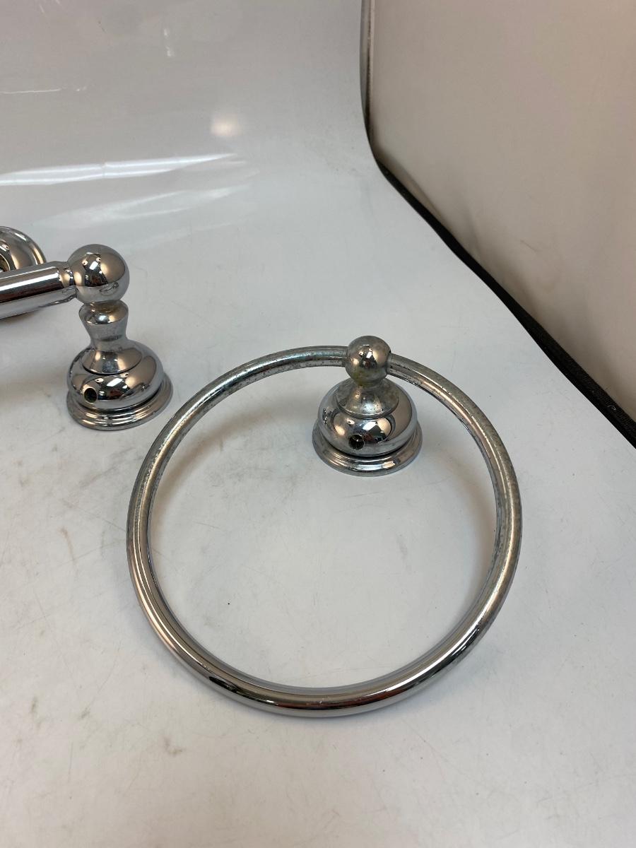 Shiny Silver Tone Chrome Metal Bathroom Fixture Towel Holder Parts. Previously used but reusable.