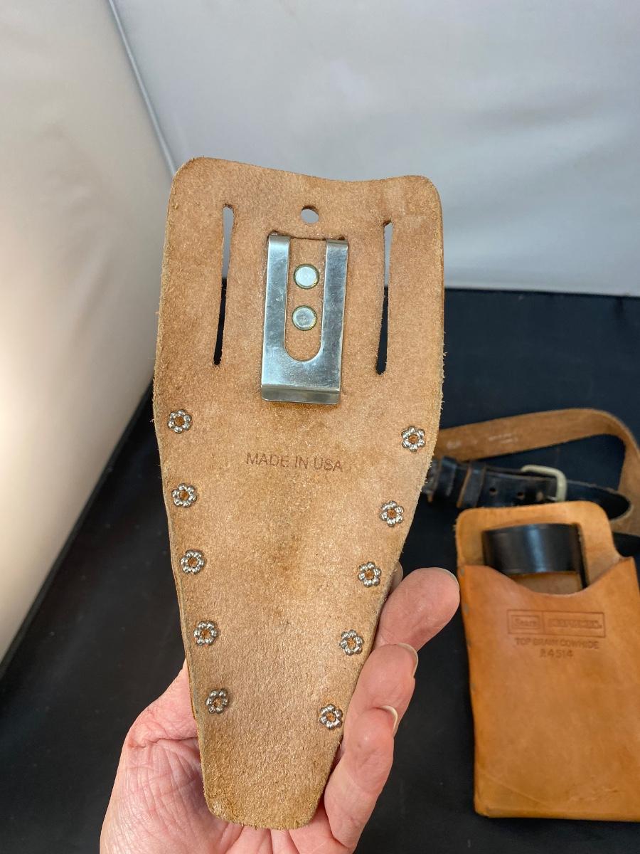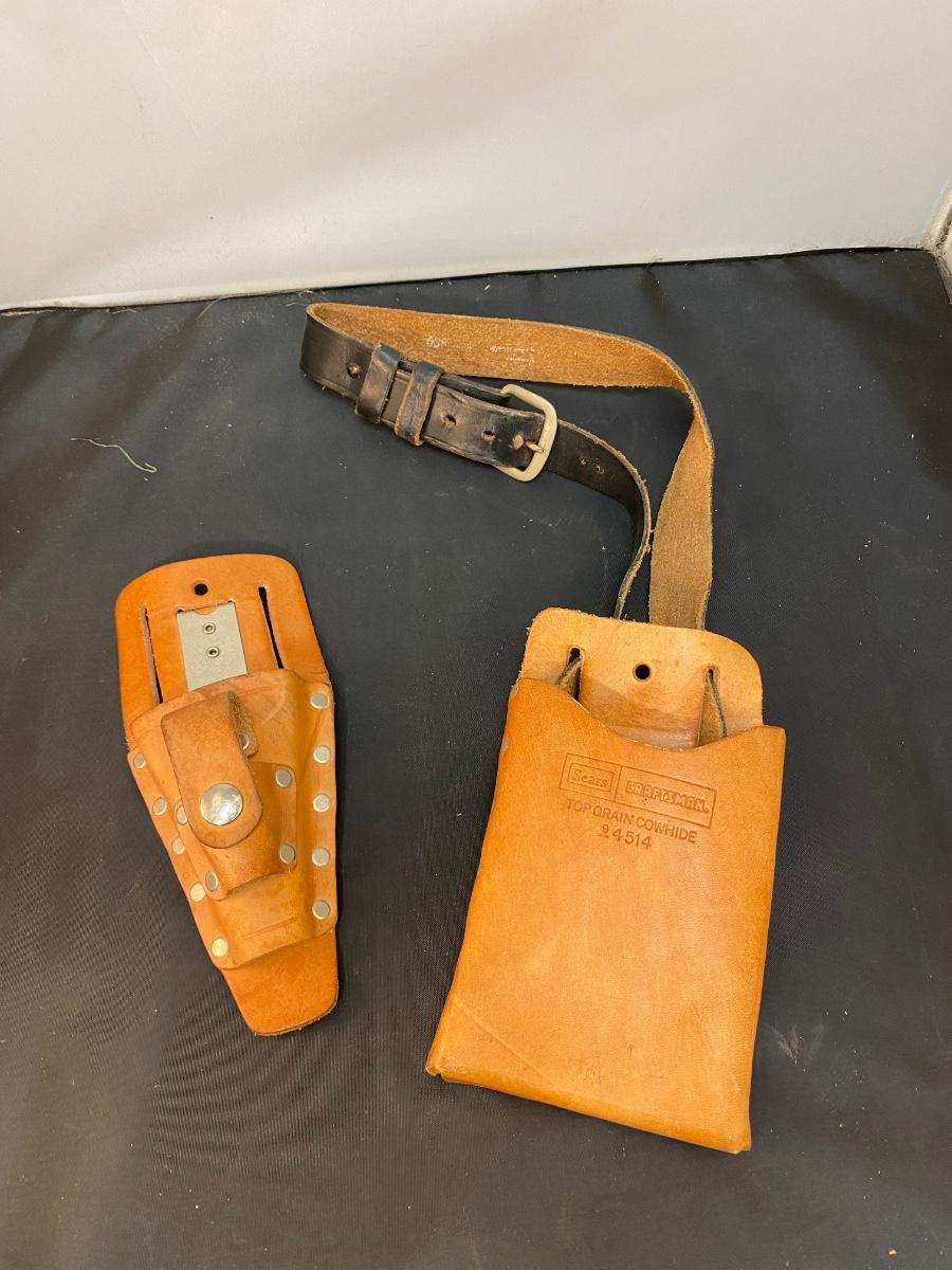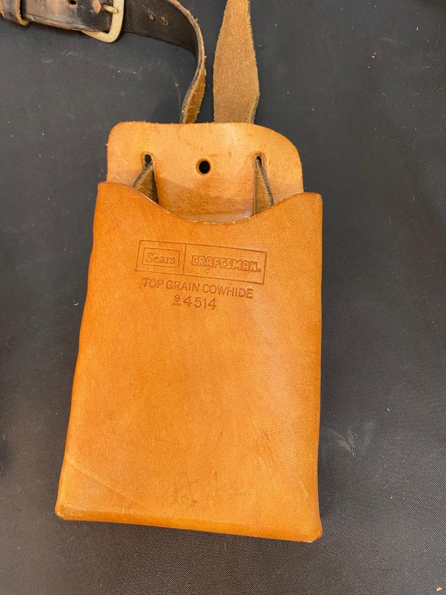 Pair of Leather Belt Worn Tool Holders. The one with the belt is from Sears Craftsman. Both are in good condition.