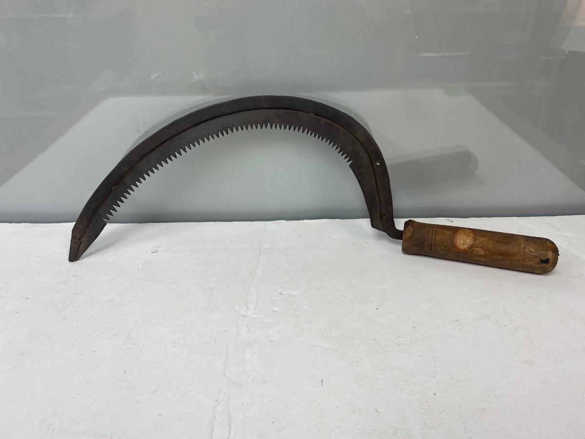 Antique Primitive Saw Tooth Inside Edge Sickle Scythe Handheld Reaper England