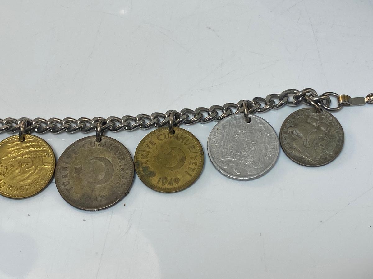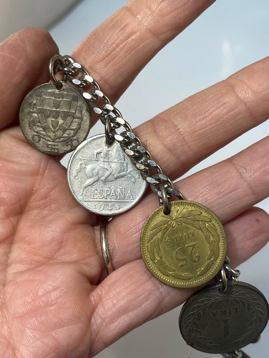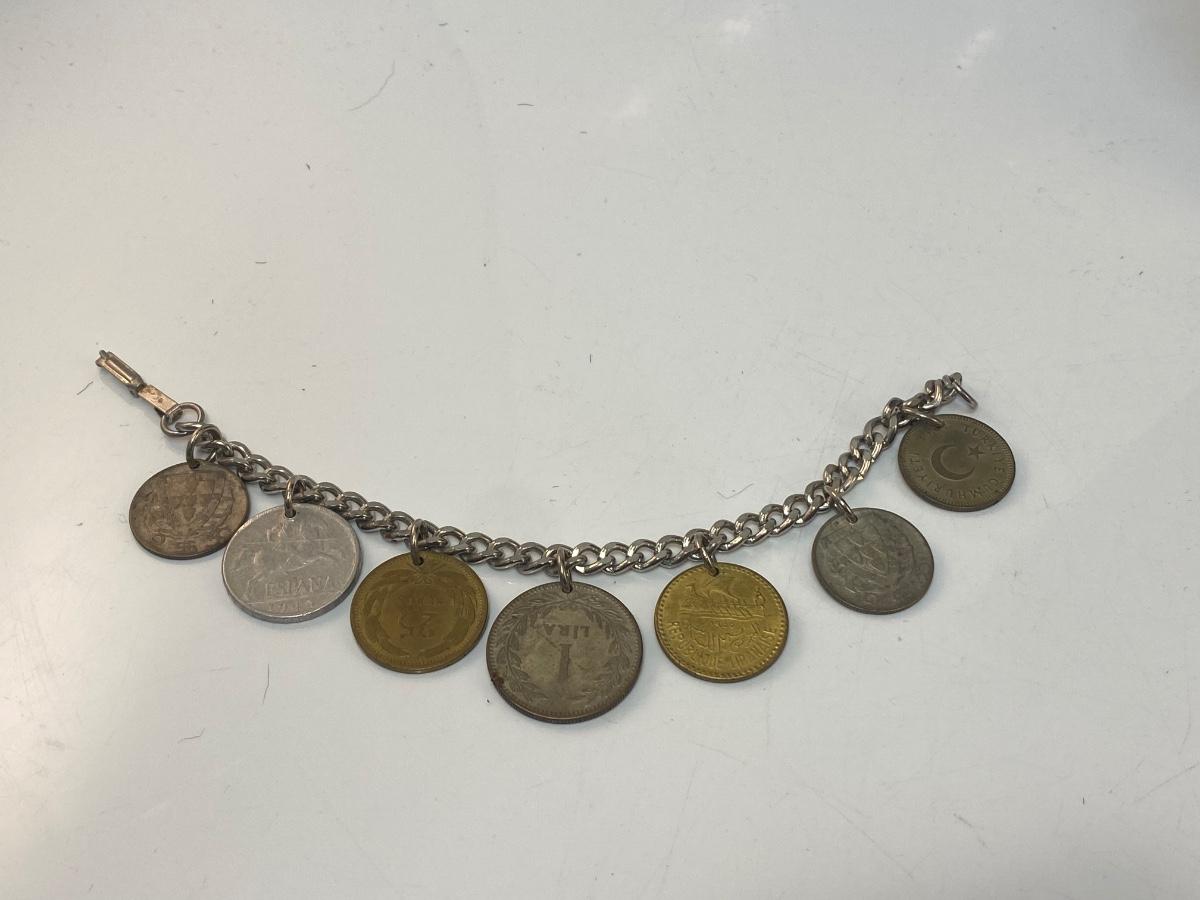 Vintage Retro Foreign Coin Charm Bracelet Different Currency