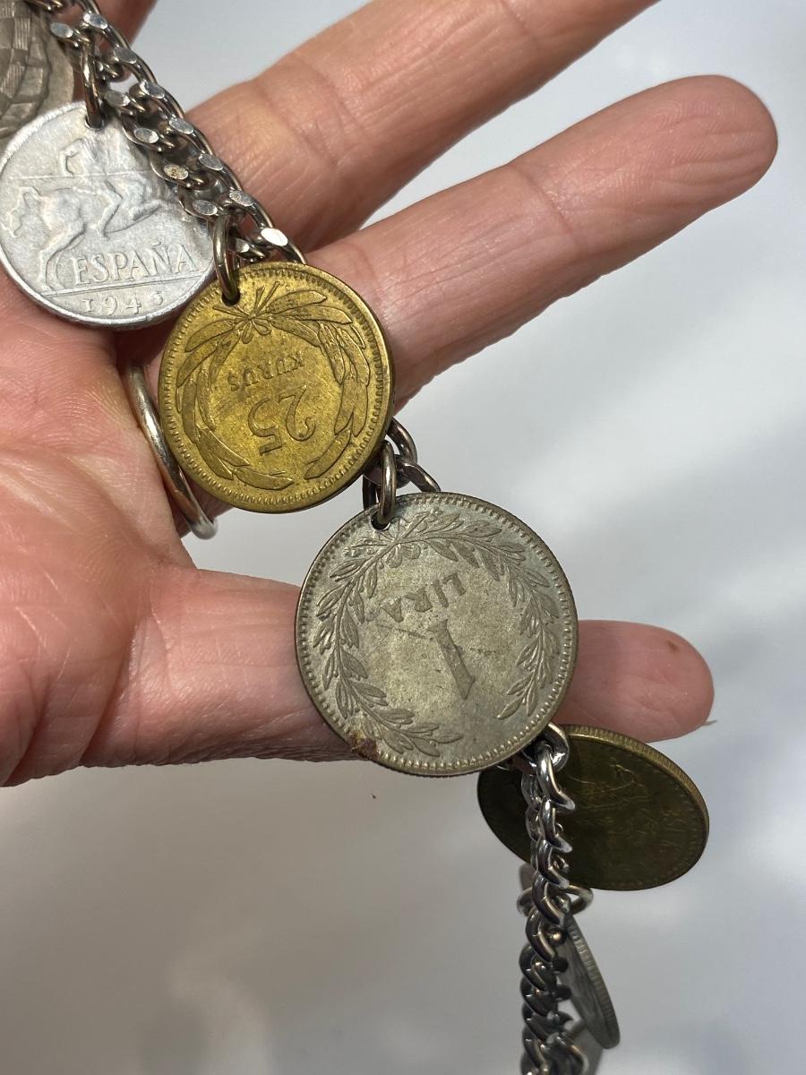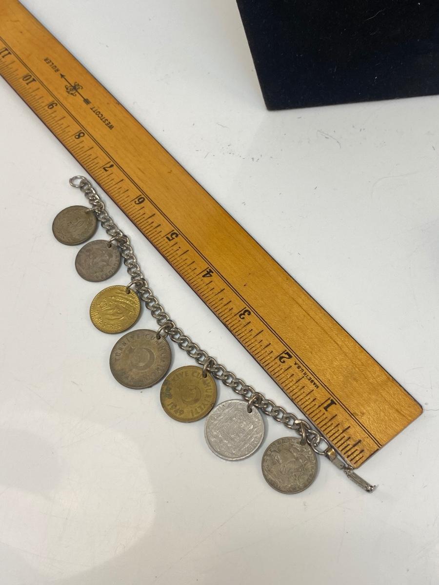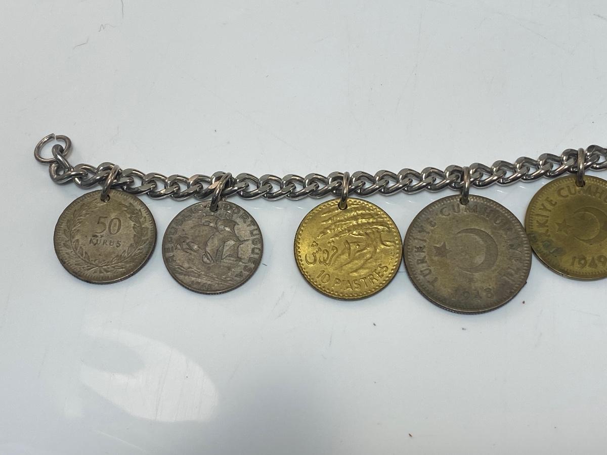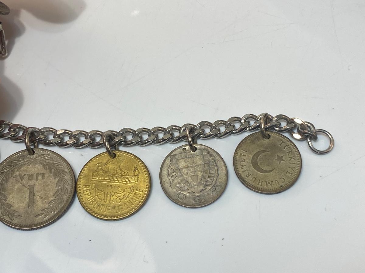 Vintage Retro Foreign Coin Charm Bracelet Different Currency
