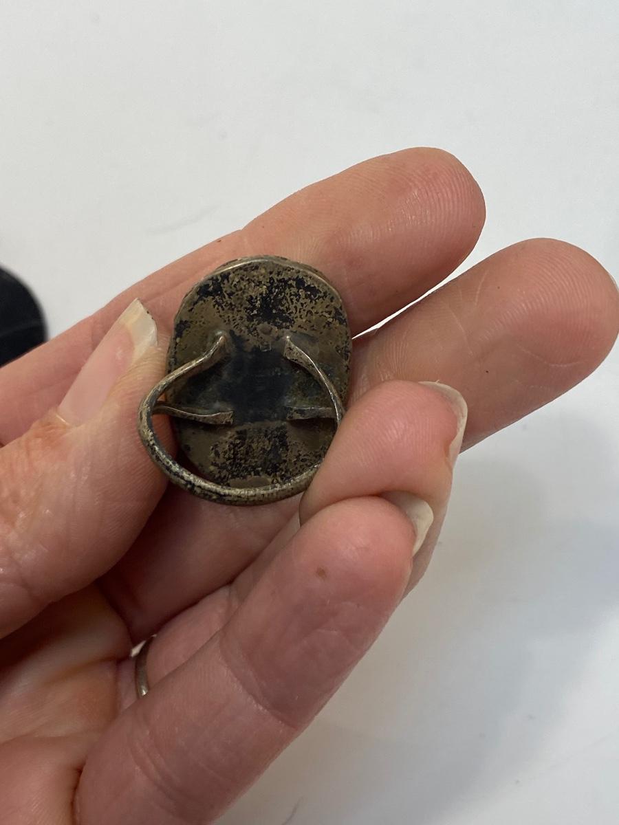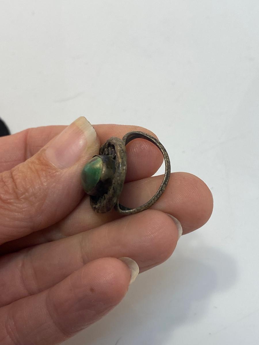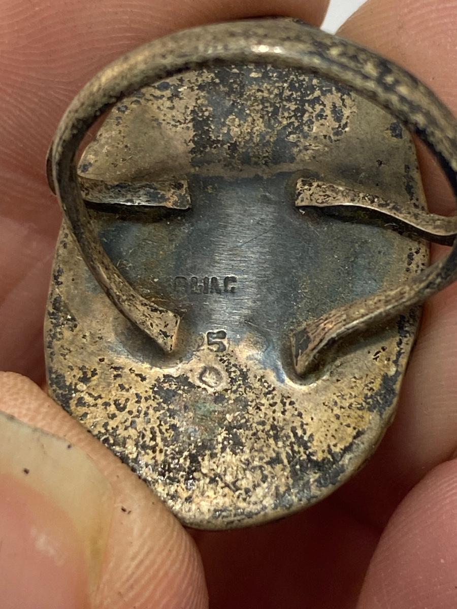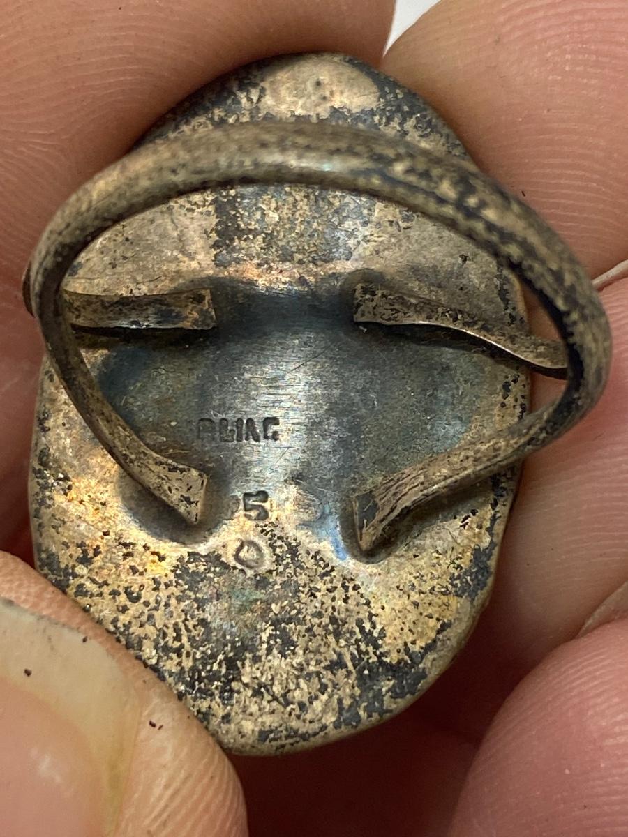 Vintage Southwestern Old Pawn Sterling Silver Green Agate Turquoise Jewelry For Repair Repurpose. Both pieces show age and need to be repaired or repurposed. The ring is stamped sterling inside it looks like. See photos.