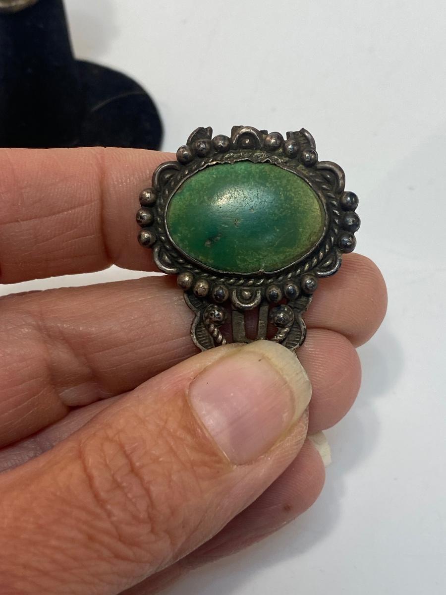 Vintage Southwestern Old Pawn Sterling Silver Green Agate Turquoise Jewelry For Repair Repurpose