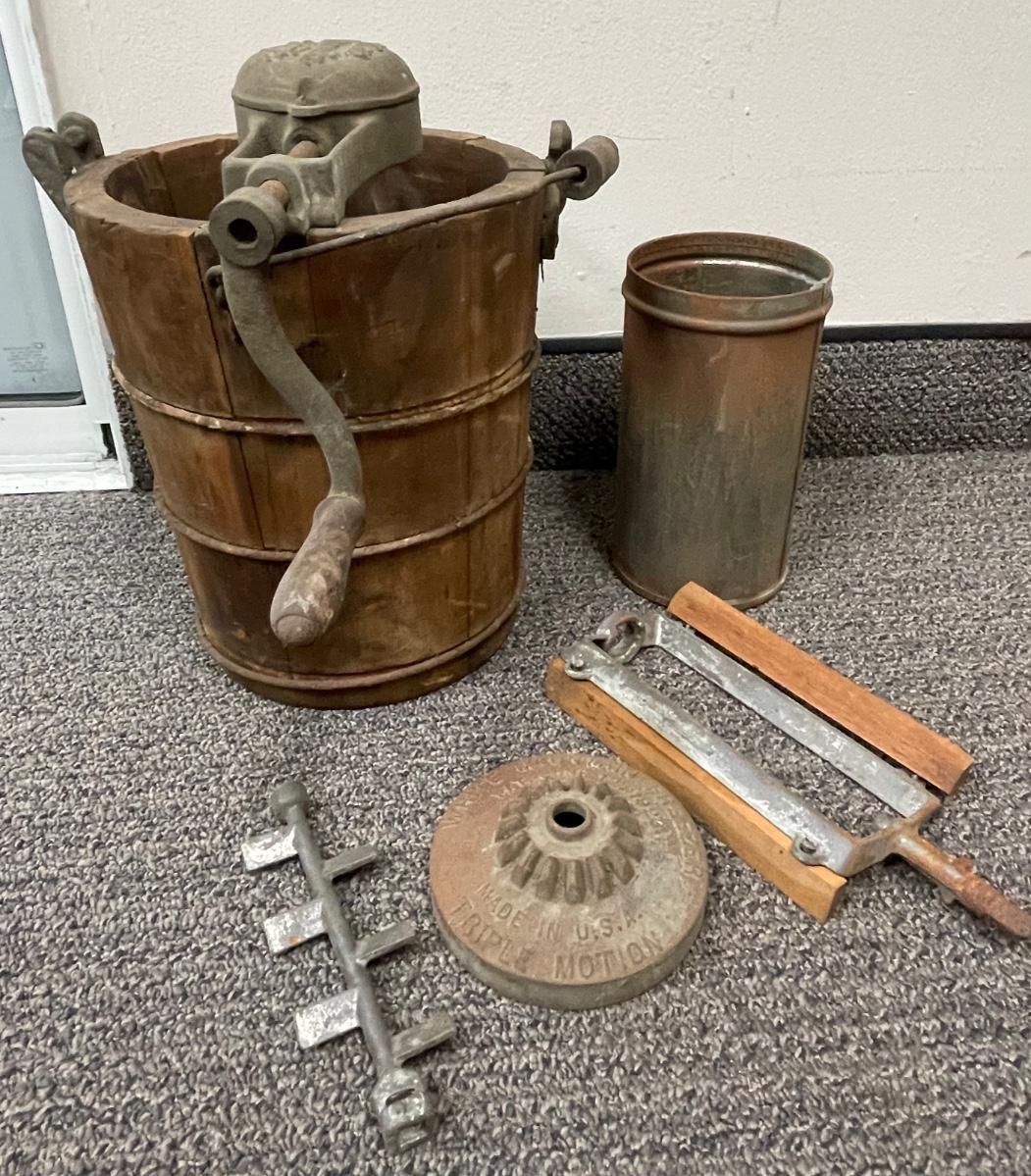 Antique Rusty White Mountain Triple Action Hand Crank Ice Cream Freezer USA