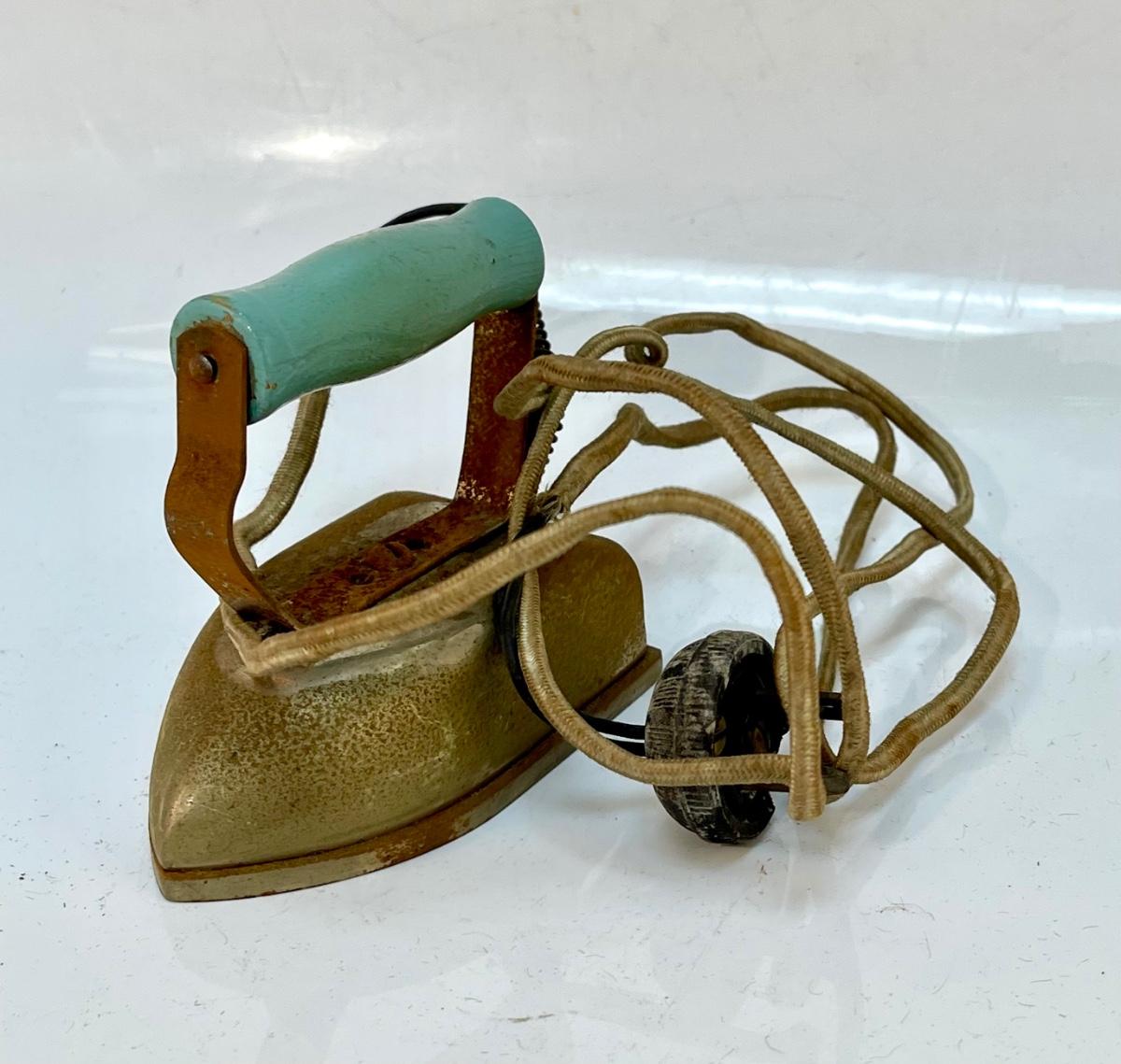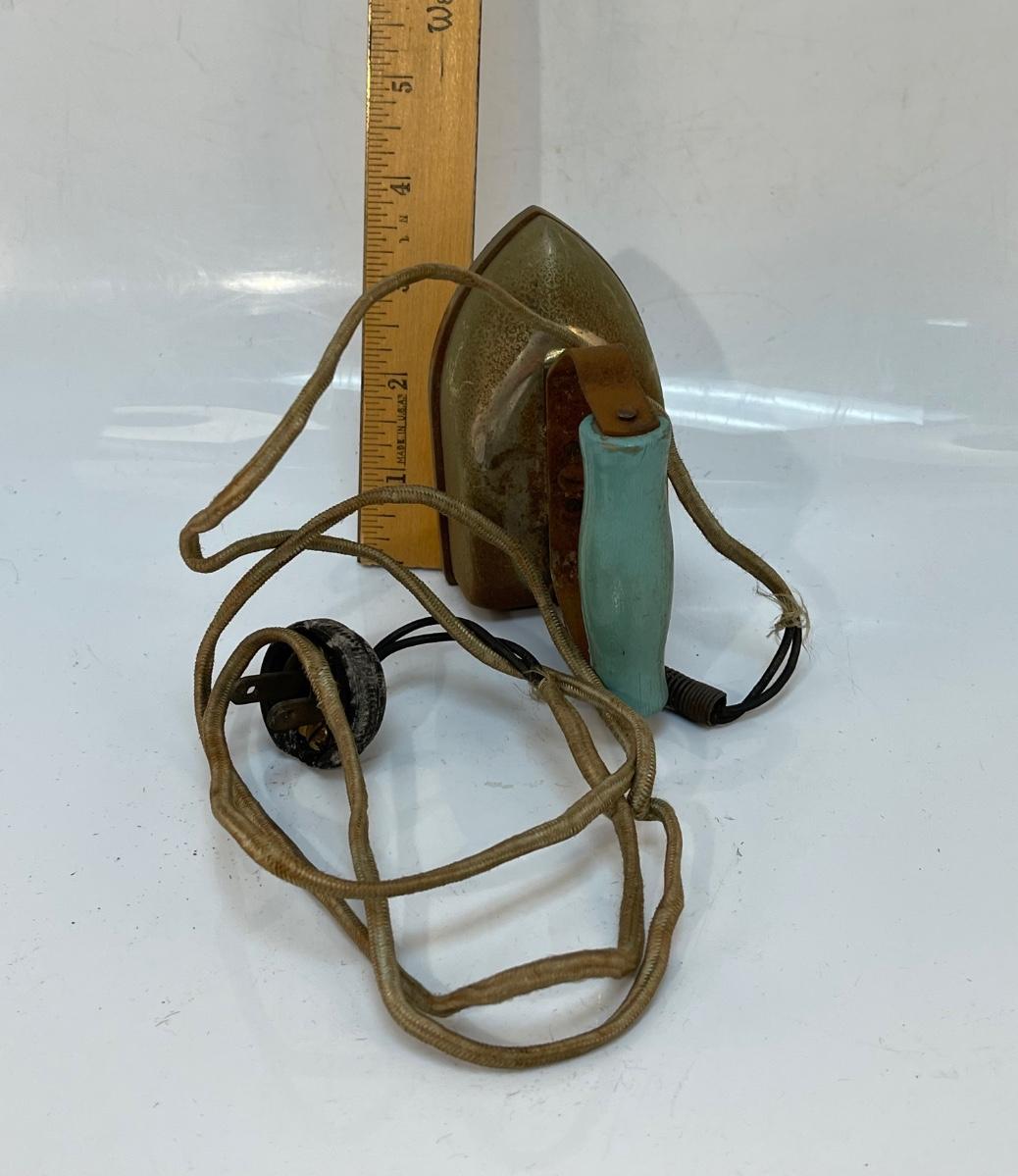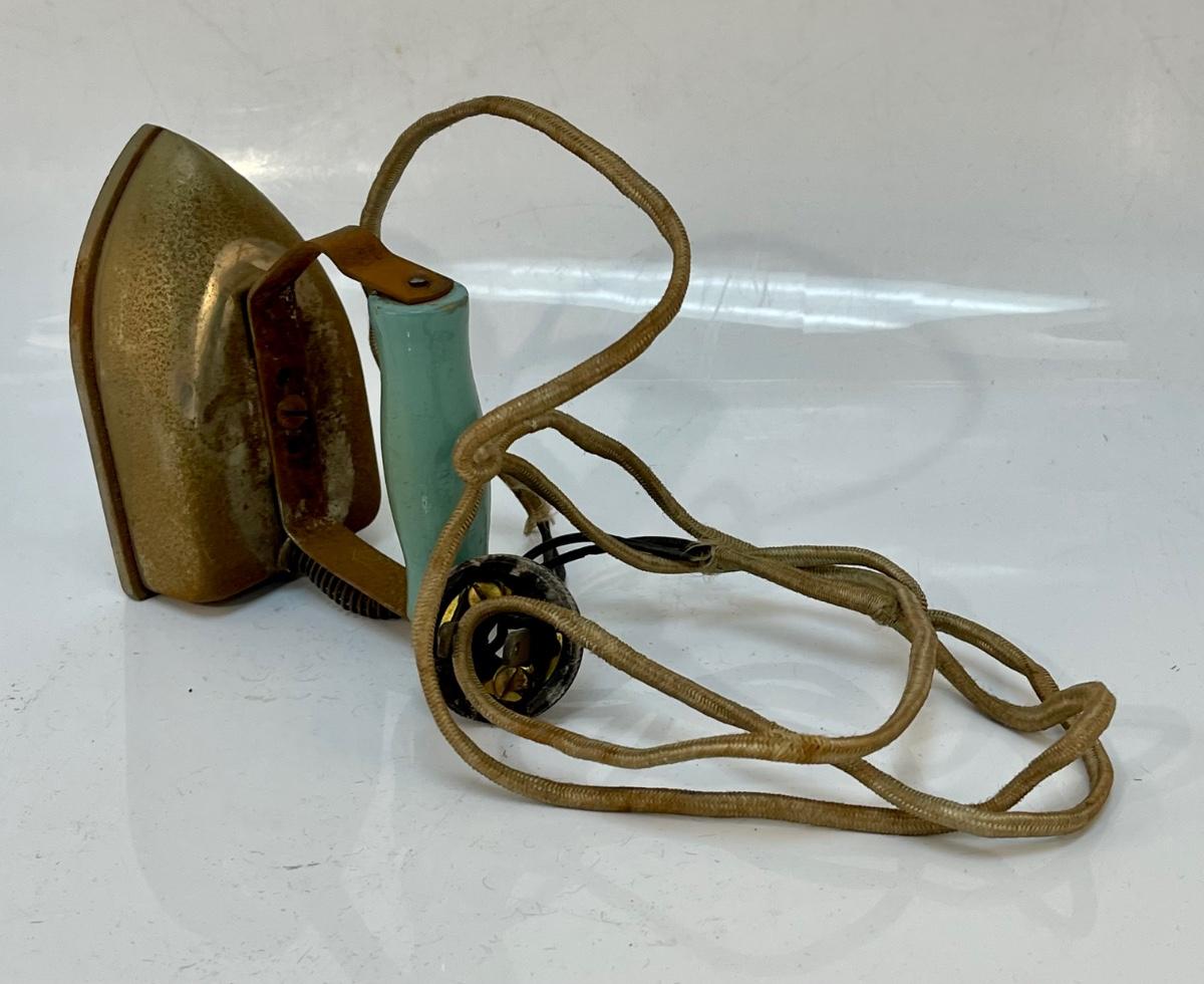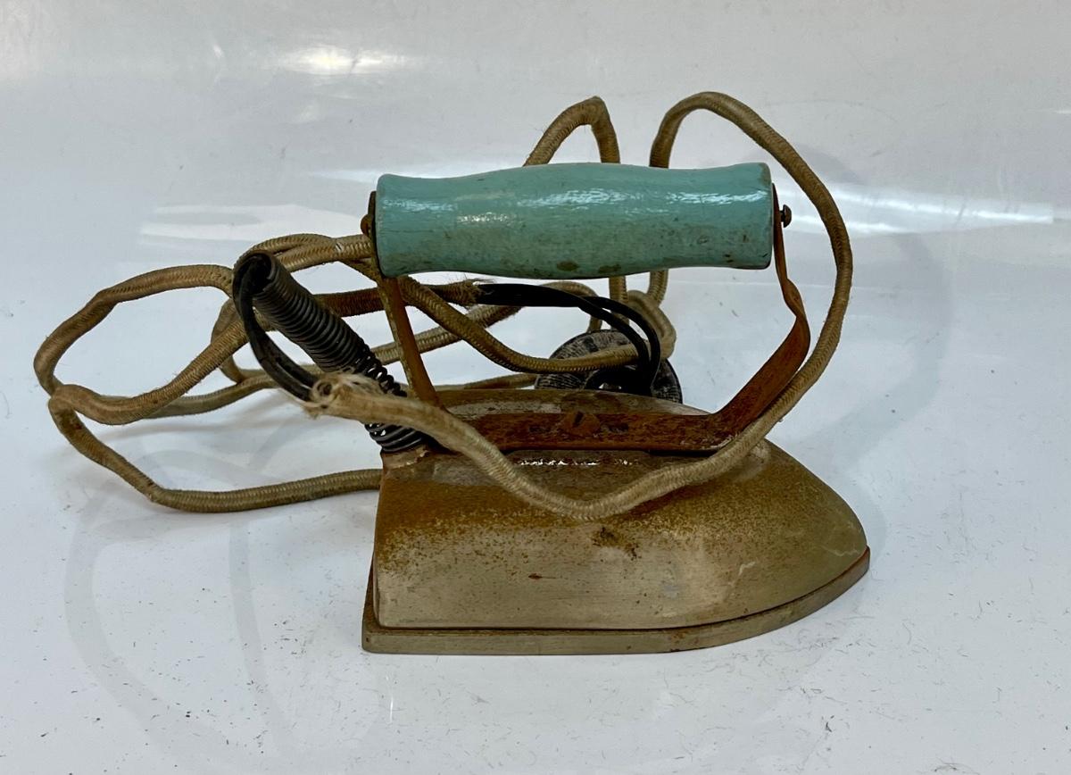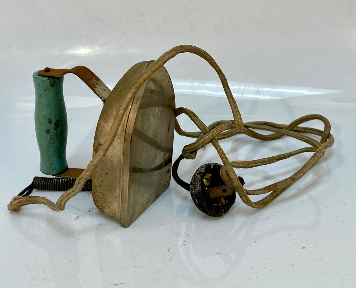 Vintage Electric Clothes Iron Green Handle. Has signs of age but may clean up nicely for display. Untested.