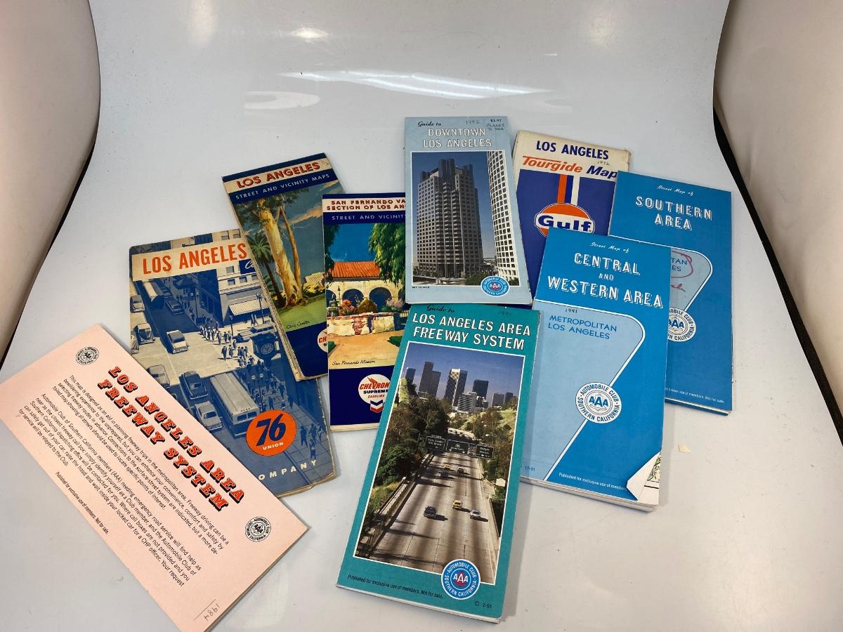 Mixed Lot of Various Vintage Los Angeles California Road City Fold Out Maps. In good condition. Maps look to be different years so there may be variations in streets and stuff due to development.