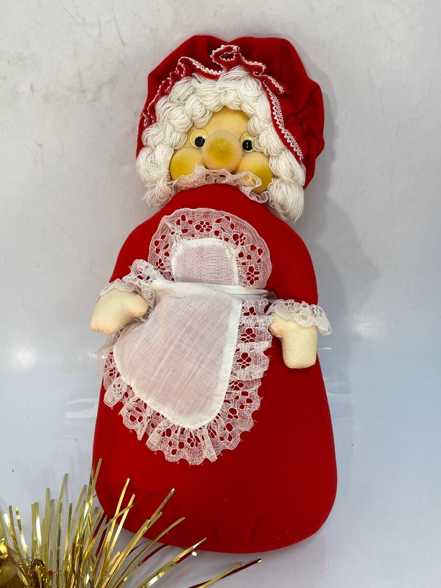 Miscellaneous Christmas Holiday Retro Decor Plush Mrs Claus Gold Foil Candle and Two Hand Panted Ornaments