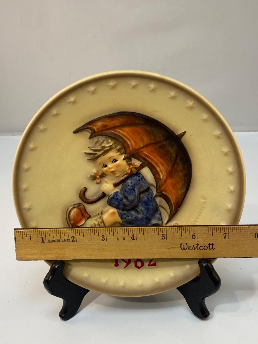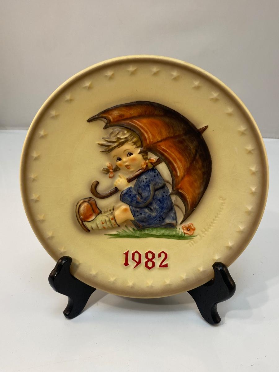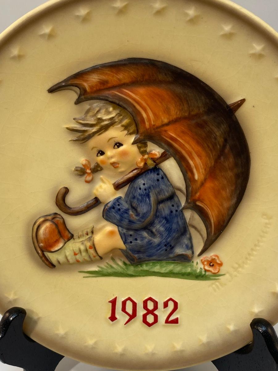 1982 MJ Hummel W. Germany Goebel 12th Annual Collector Plate HUM275 Umbrella Girl. In good displayable condition. Dusty from previous display and light crazing from age.