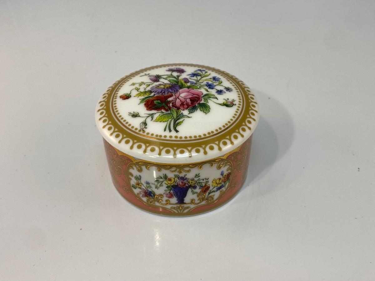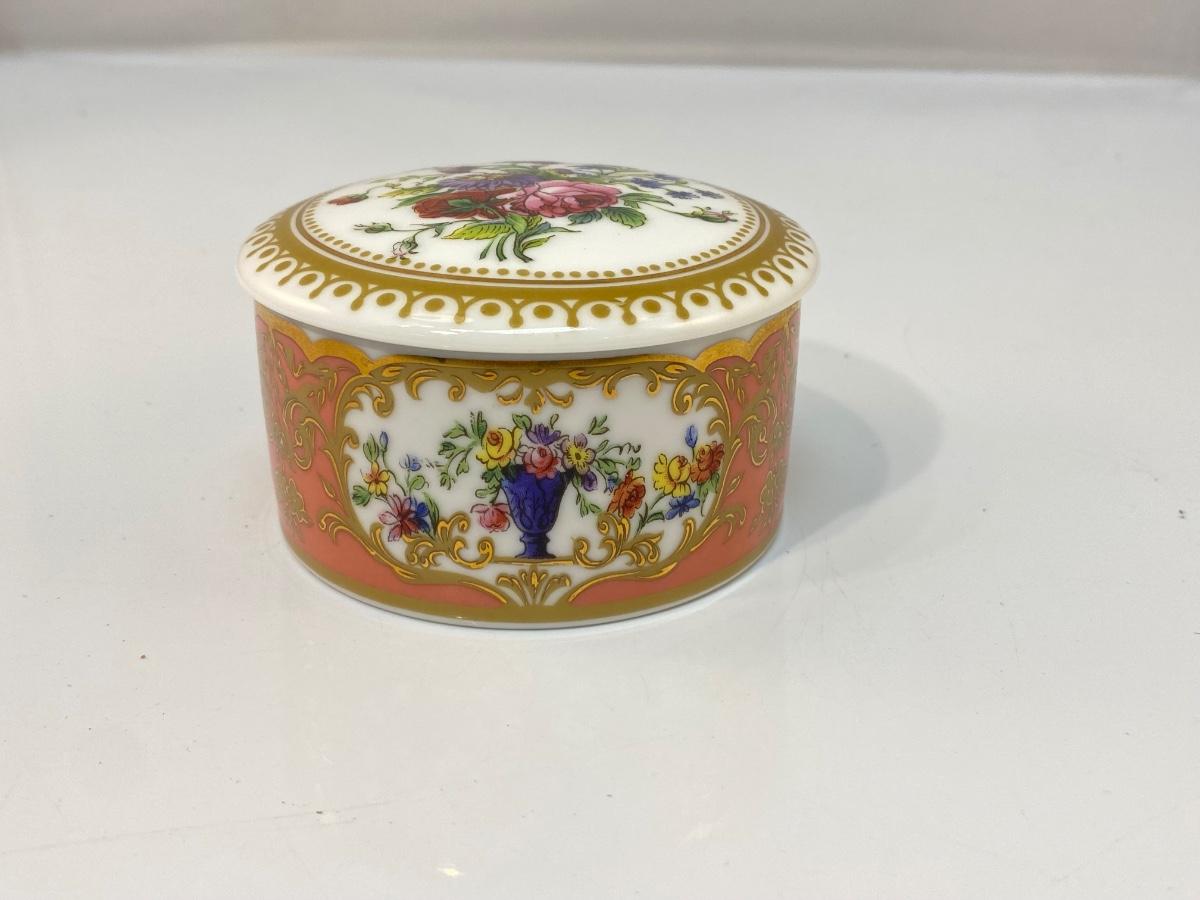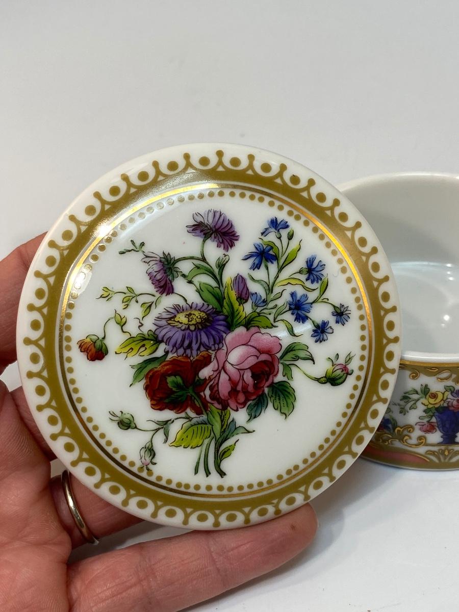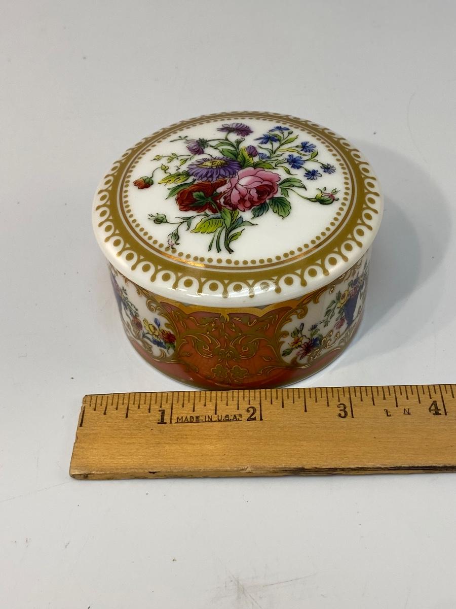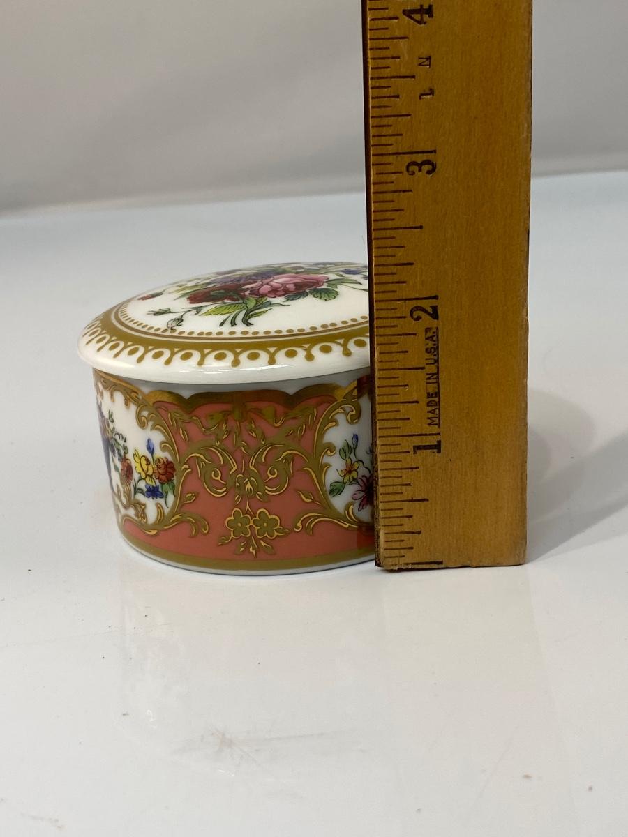 Andrea by Sadek Collection Sevres 18th Century Inspired Floral Painted Porcelain Trinket Box, Beautiful floral pattern. In good condition. About 3" size.