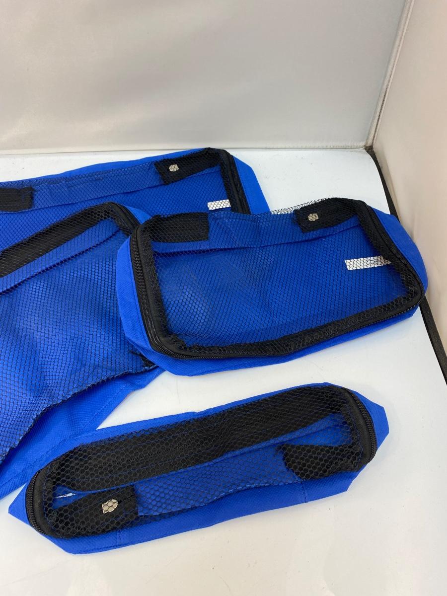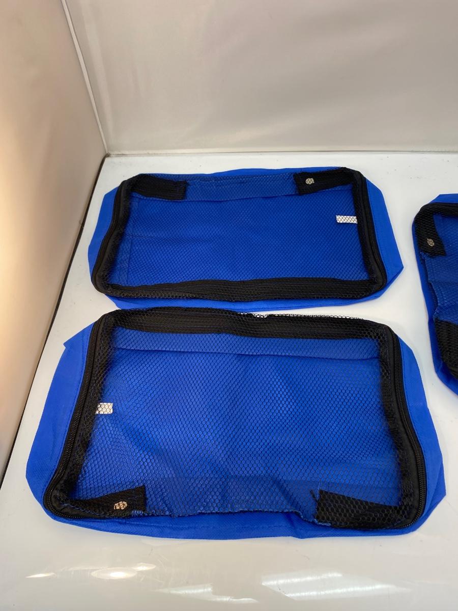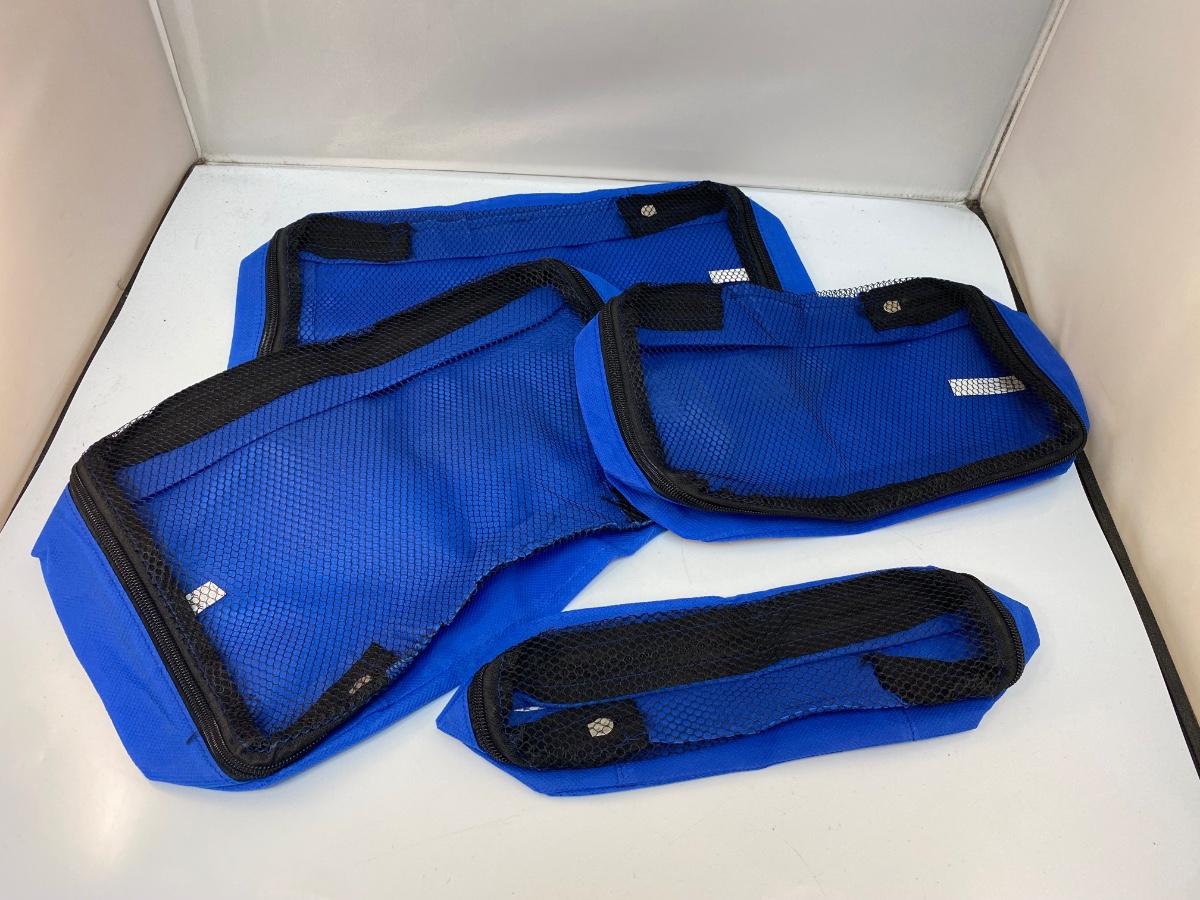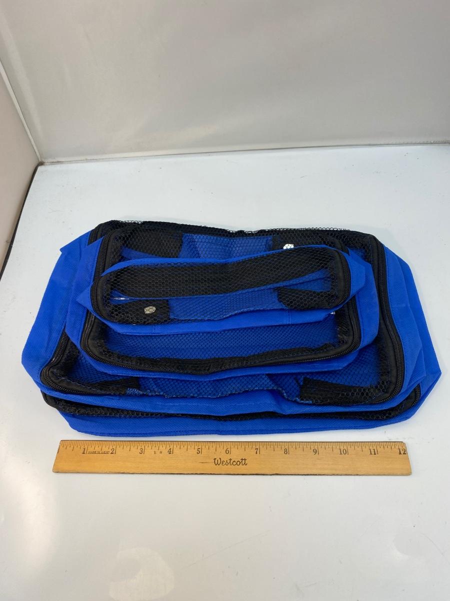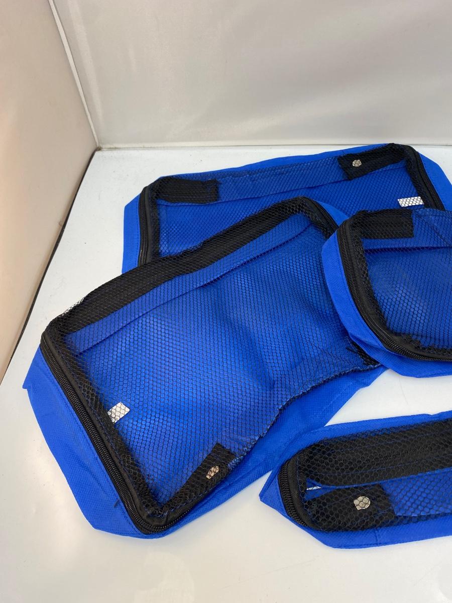 Set of 4 Lightweight Zipper Pouches for Travel Storage Toiletry Undergarments Shoe Bags. Different sizes all 12" and smaller. Great for keeping items together inside luggage.