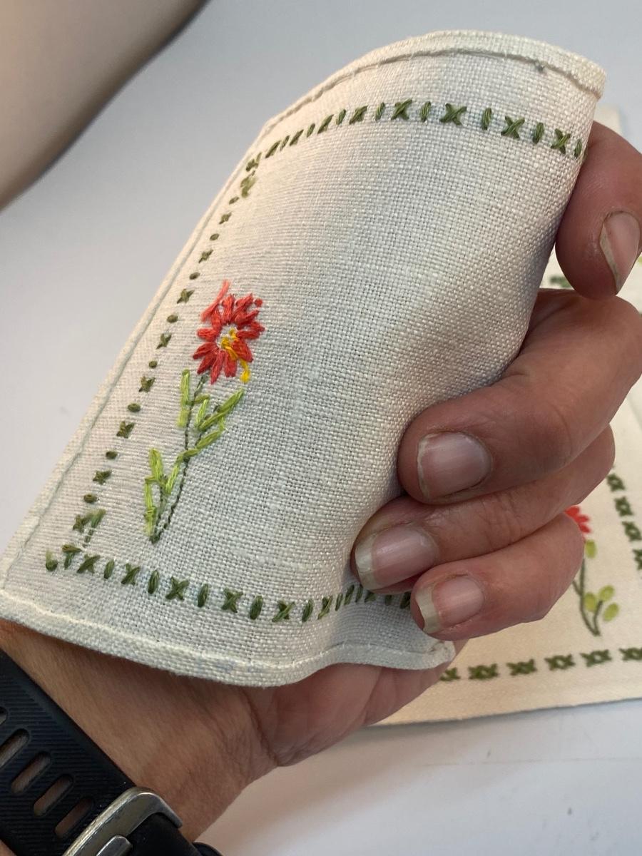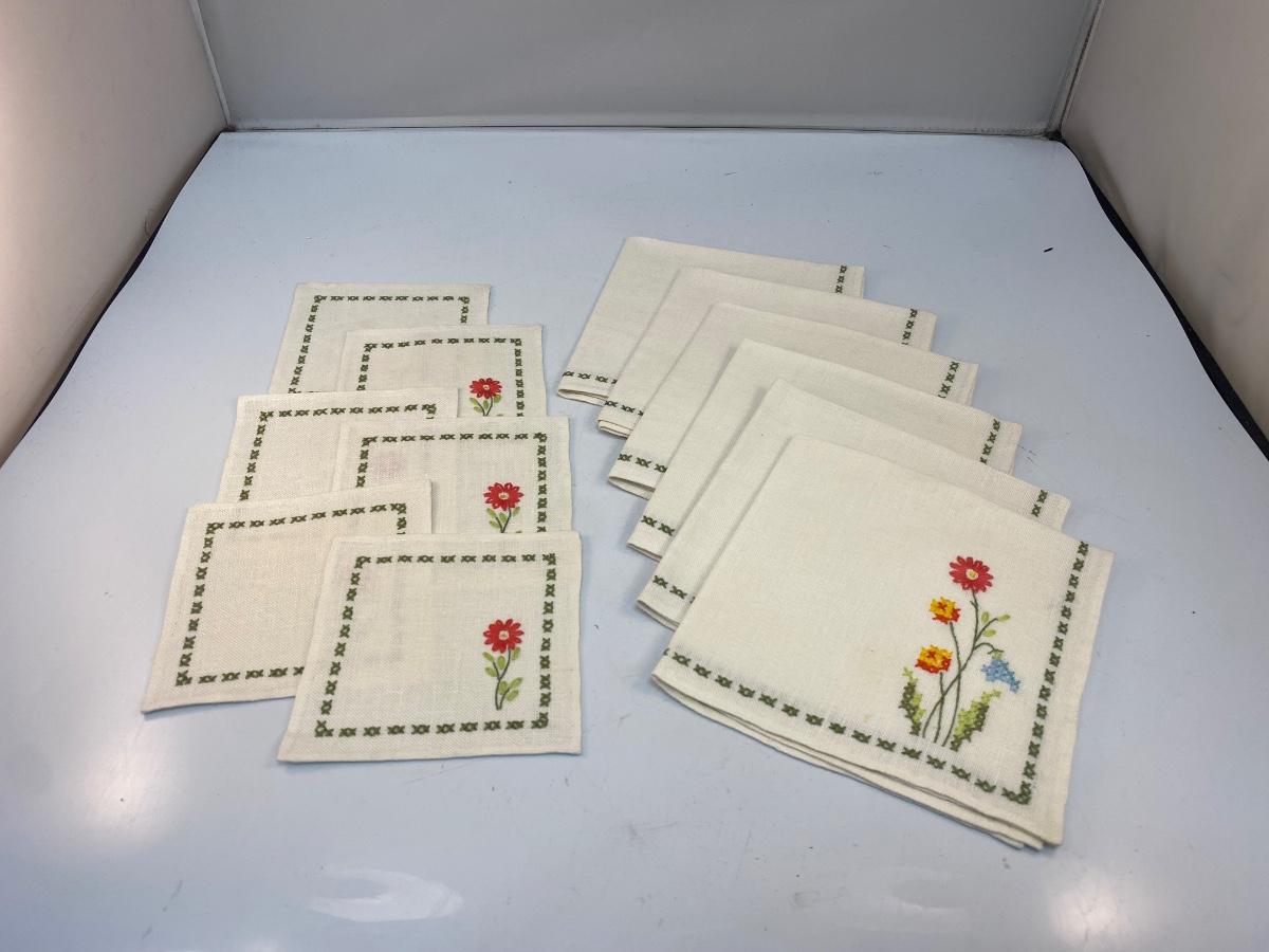 Set of 12 Flower Needlepoint Embroidered Luncheon Dinner Napkins and Drink Coaster Squares