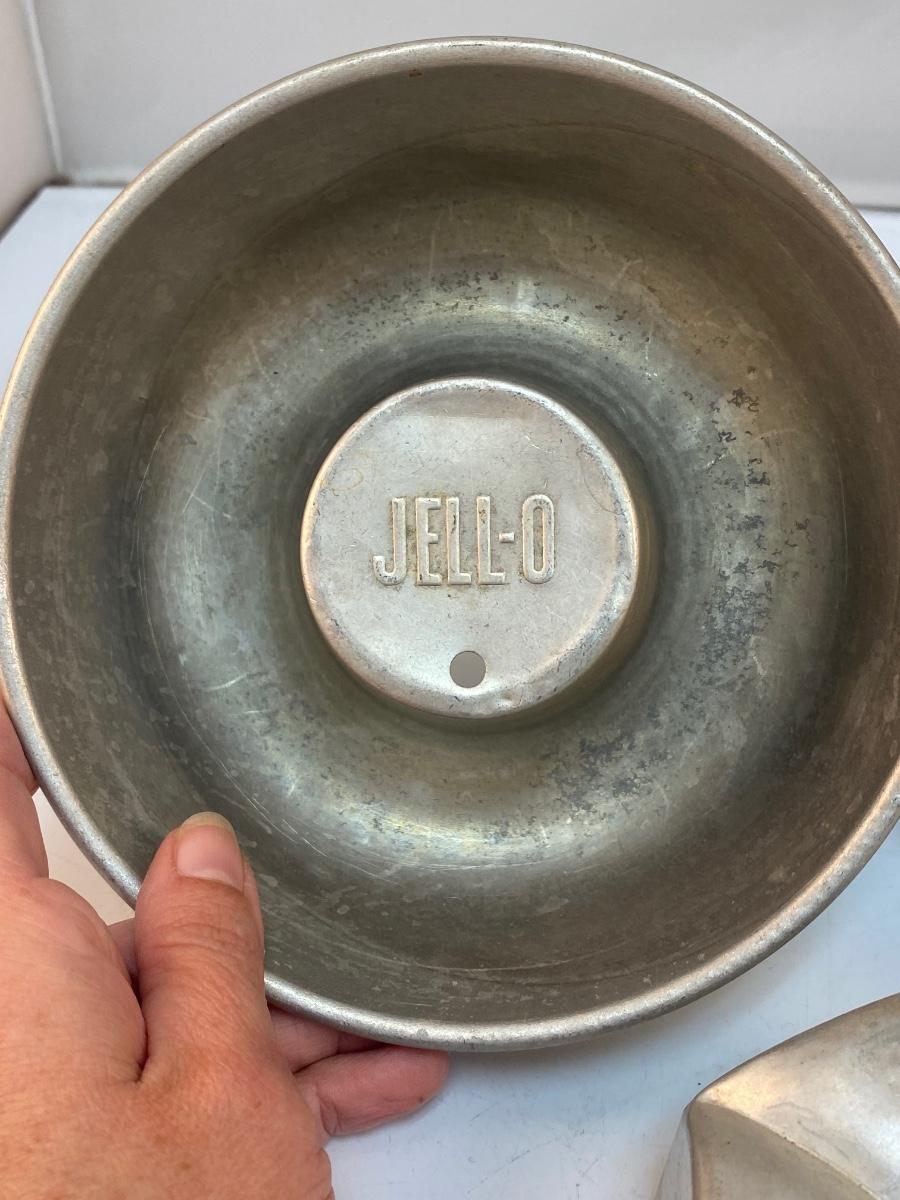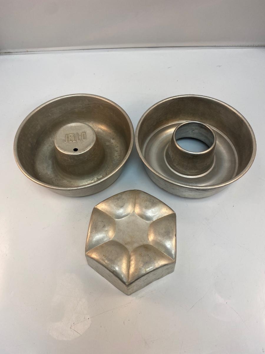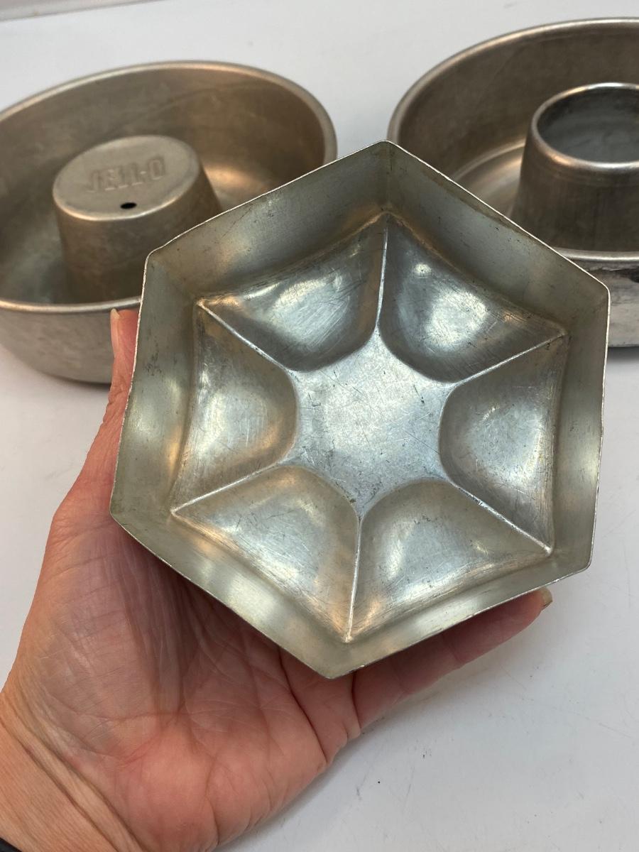 Vintage Aluminum Jello Dessert Molds. In good vintage condition. 7" size and smaller. One is Jell-o brand.