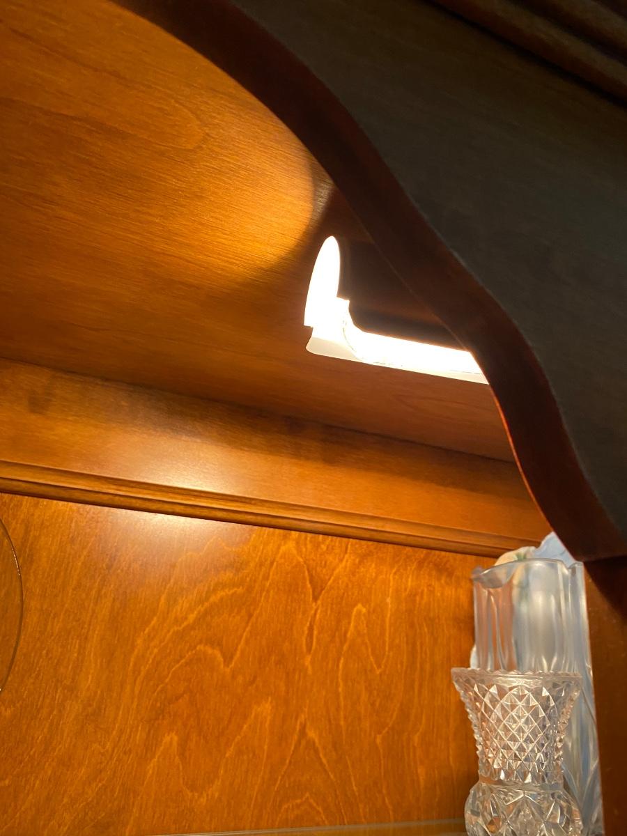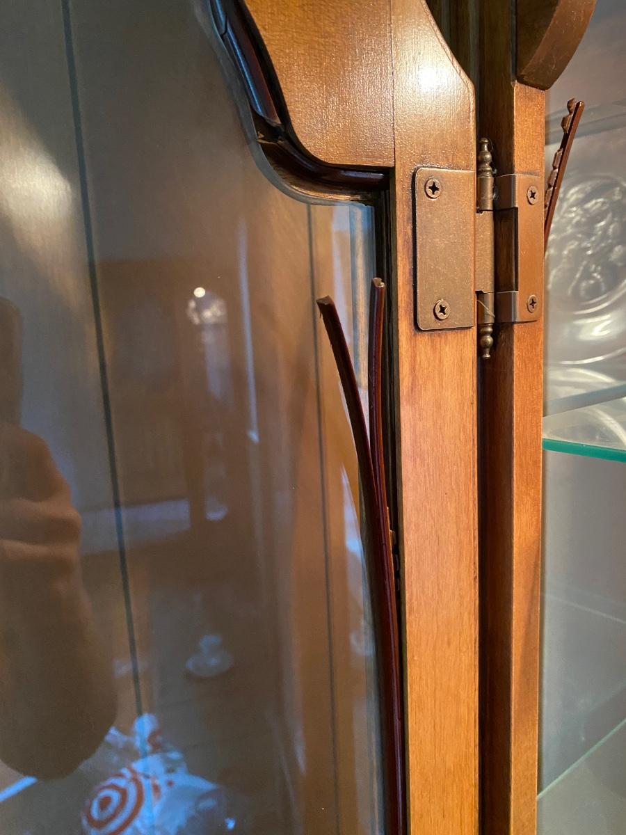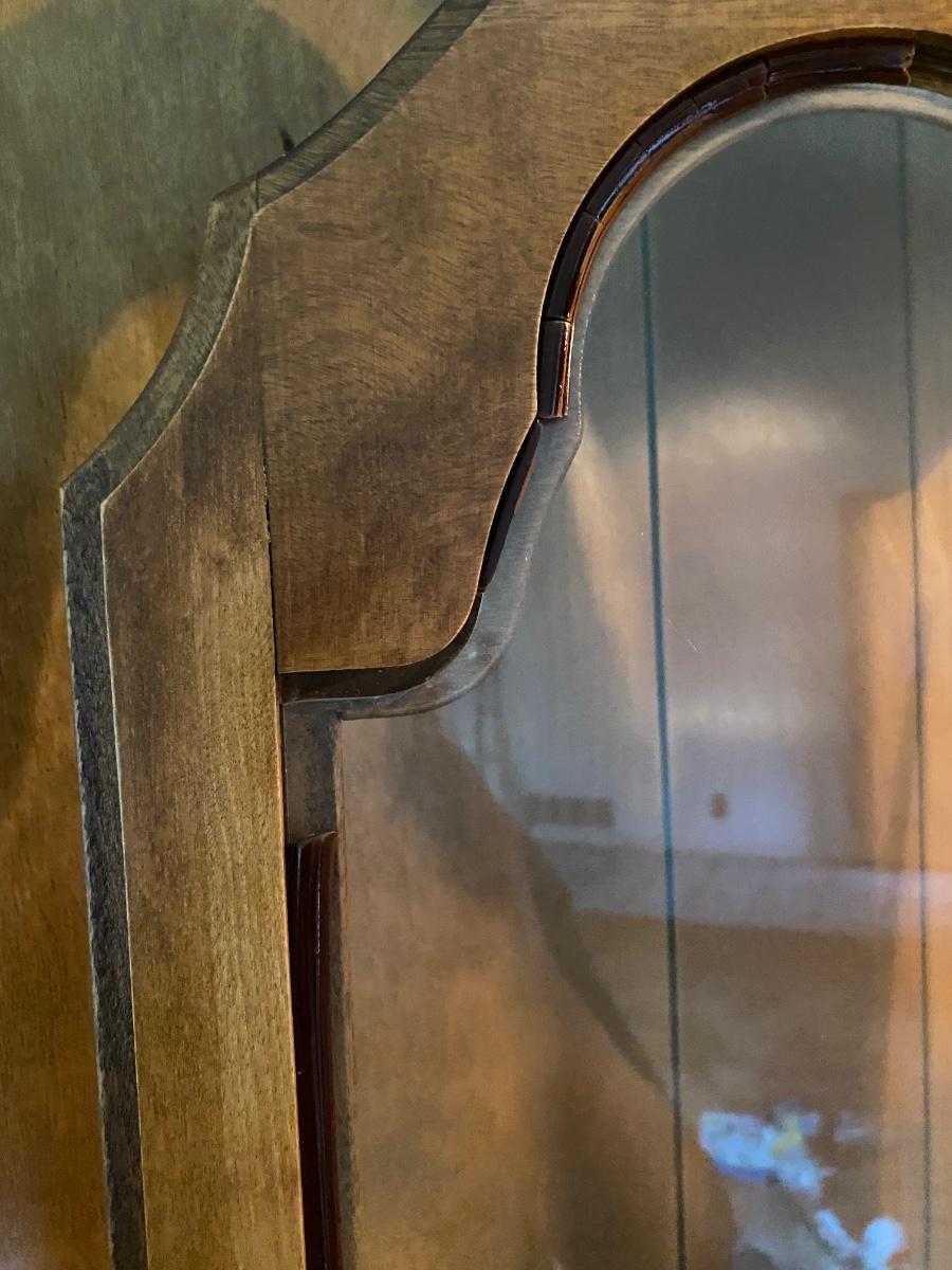 Vintage Wood and Glass Display China Curio Cabinet. In good used condition. Glass shelves are adjustable. Light inside. **Contents NOT included** About 6' tall.