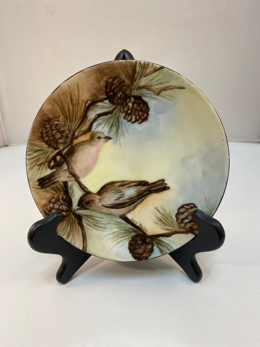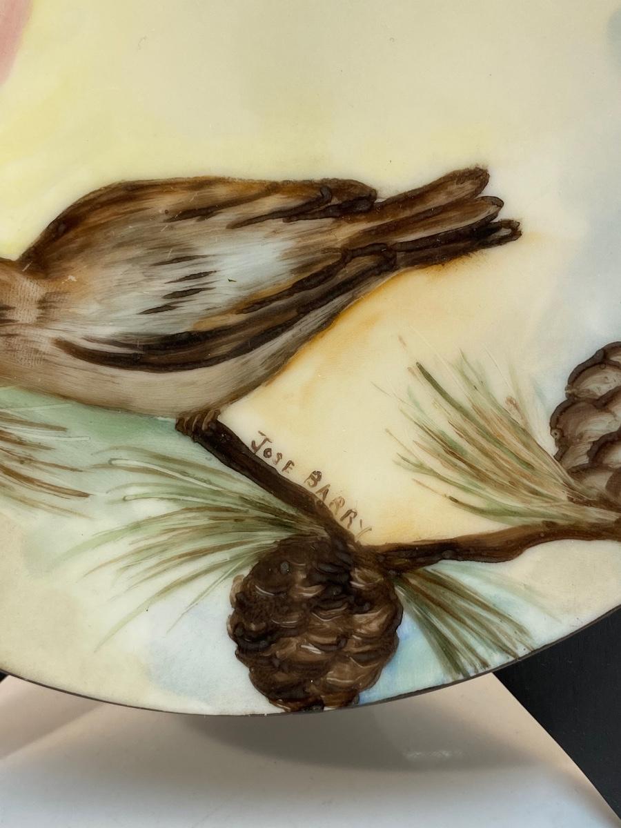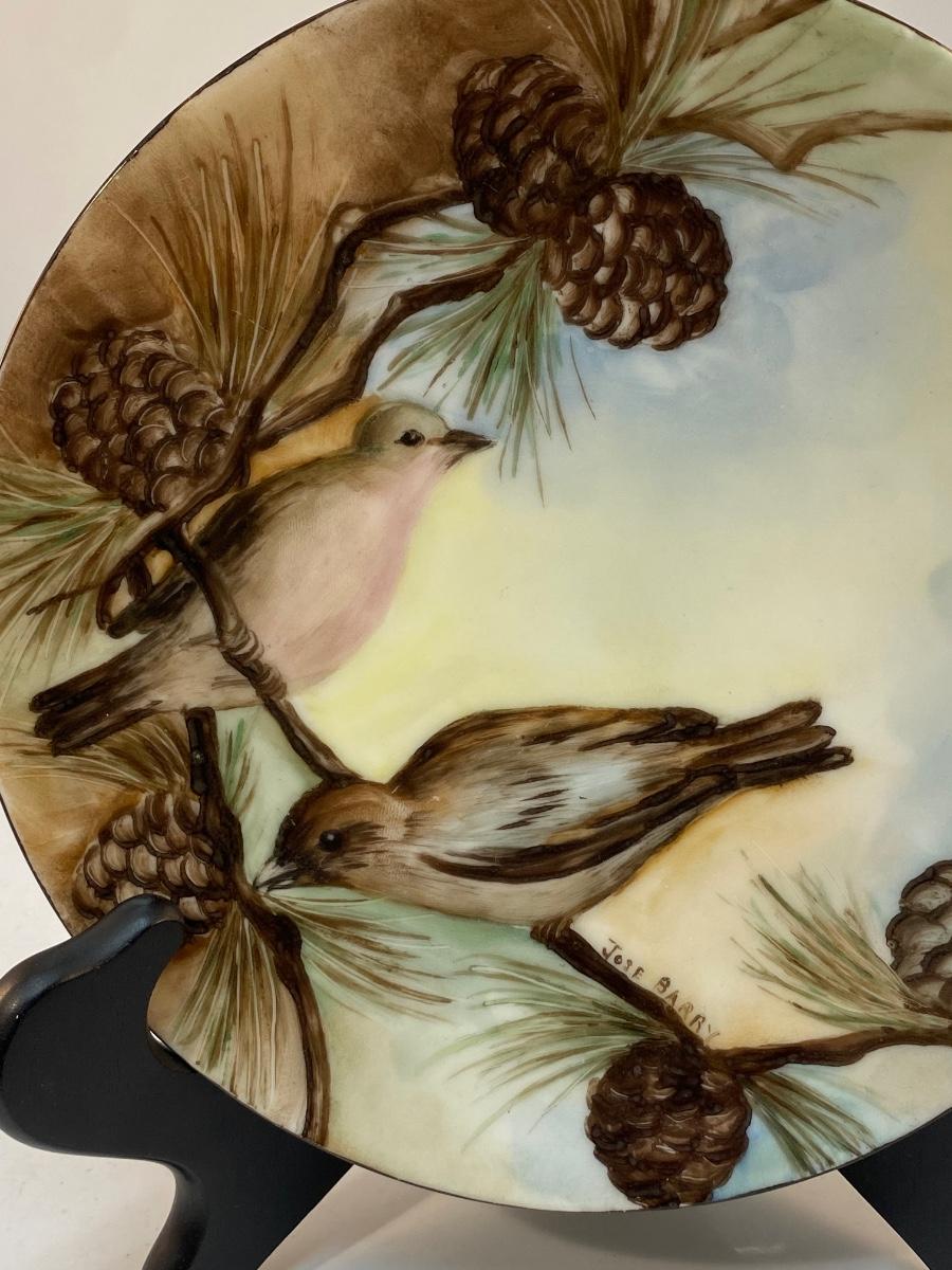 Vintage Hand Painted Thomas Bavaria Plate Birds in Pinetree Artist Signed Jose Barry