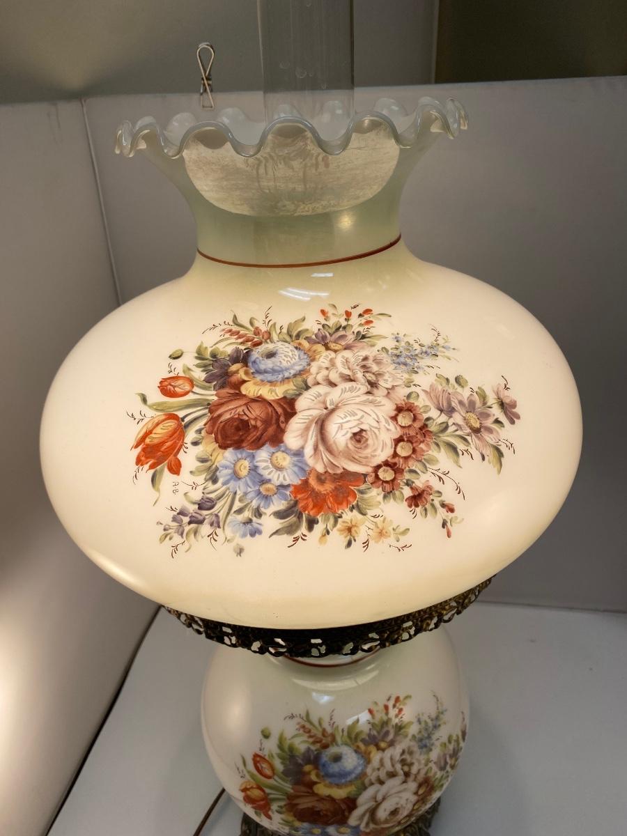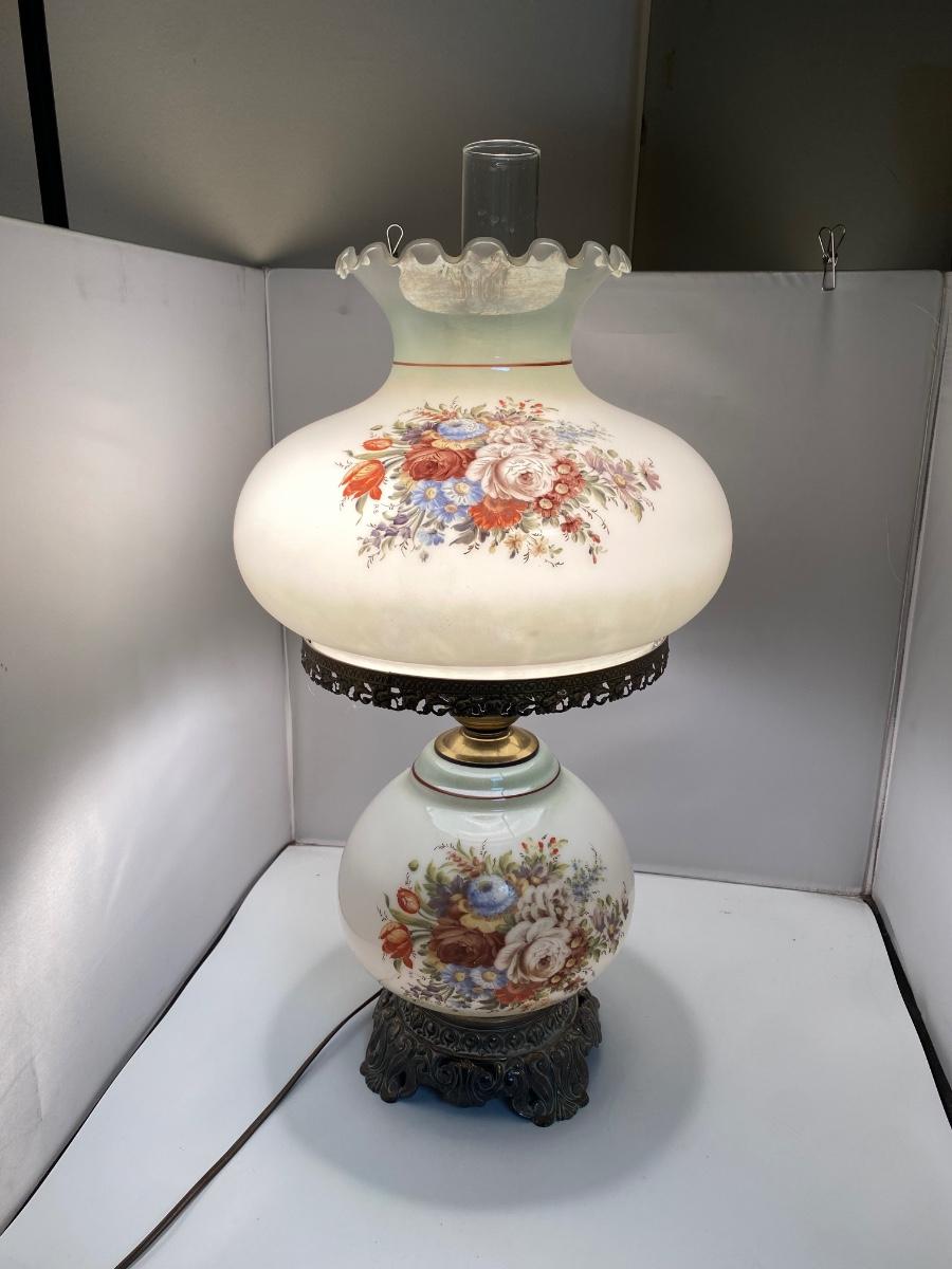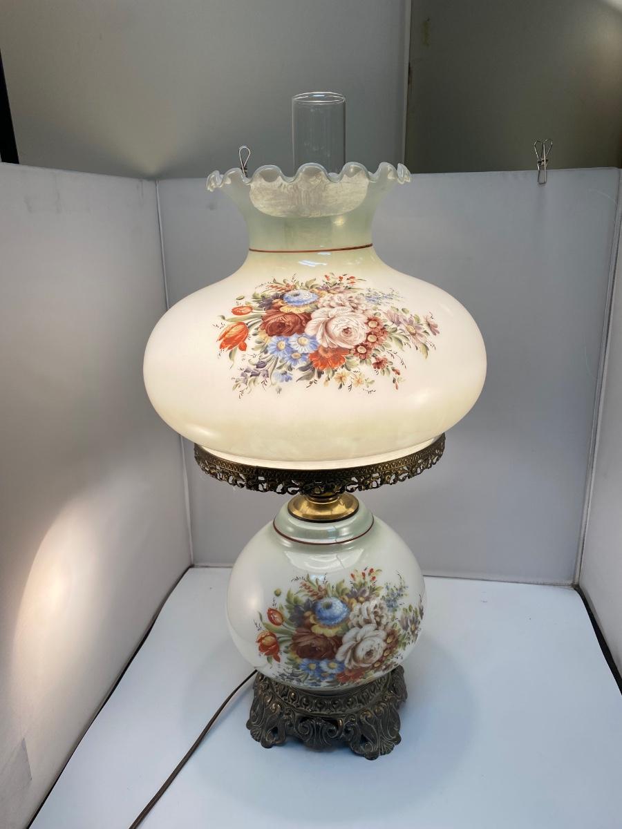 Vintage Floral Country Parlor Ruffle Top Edge Hurricane Table Lamp