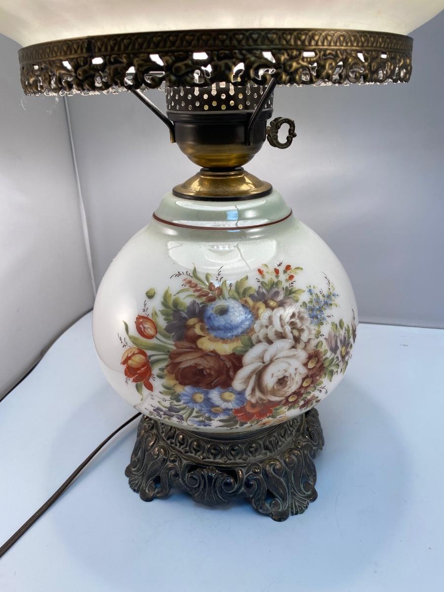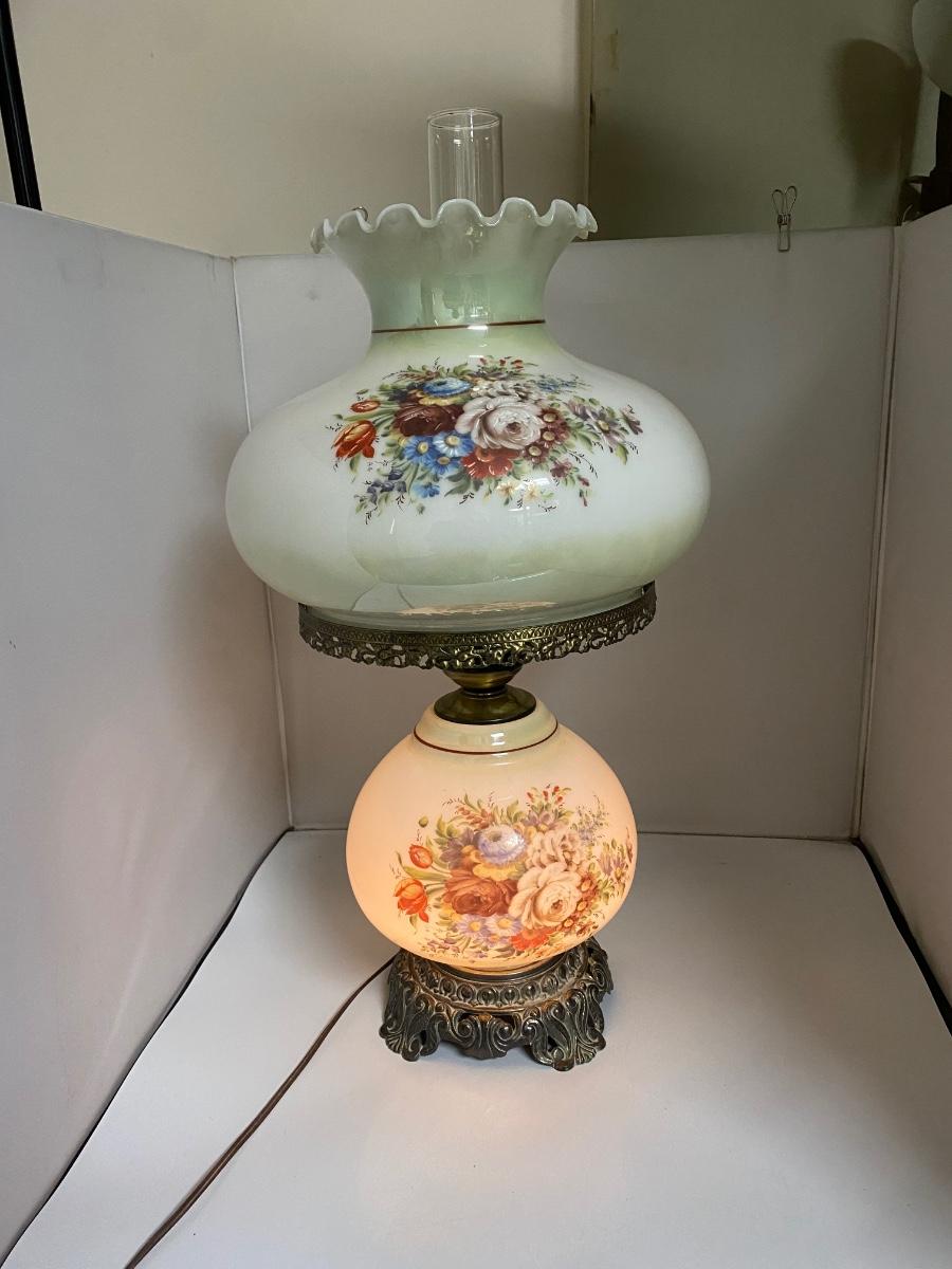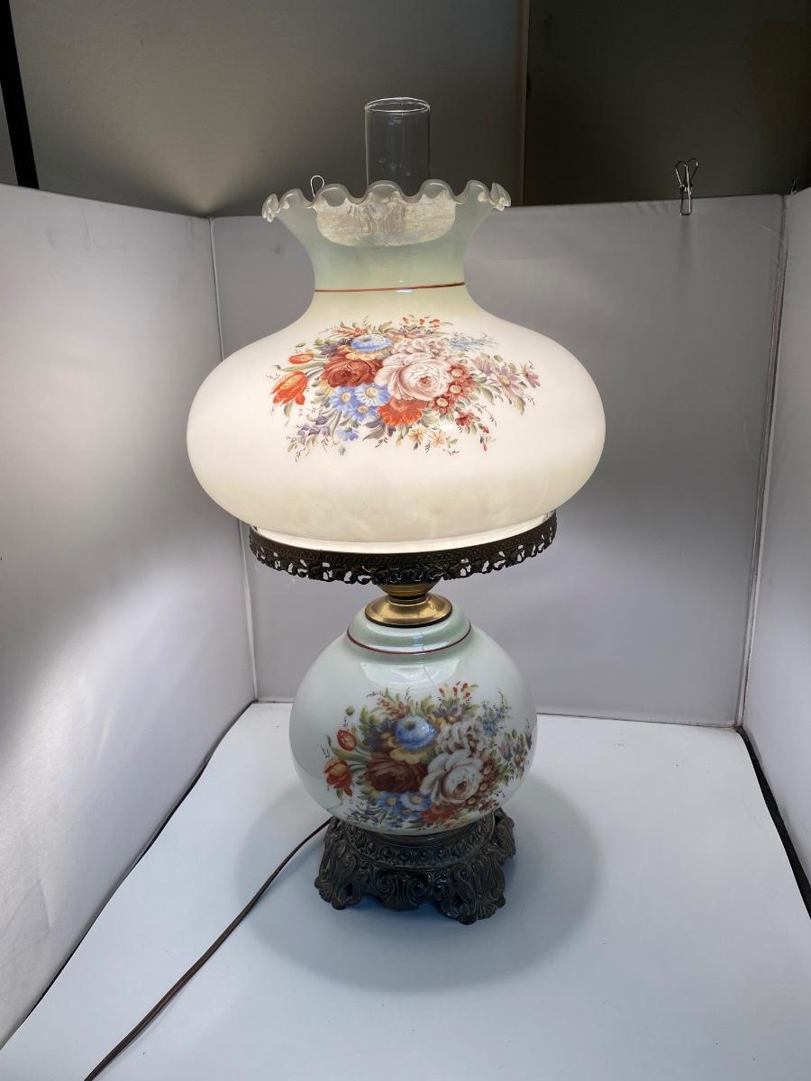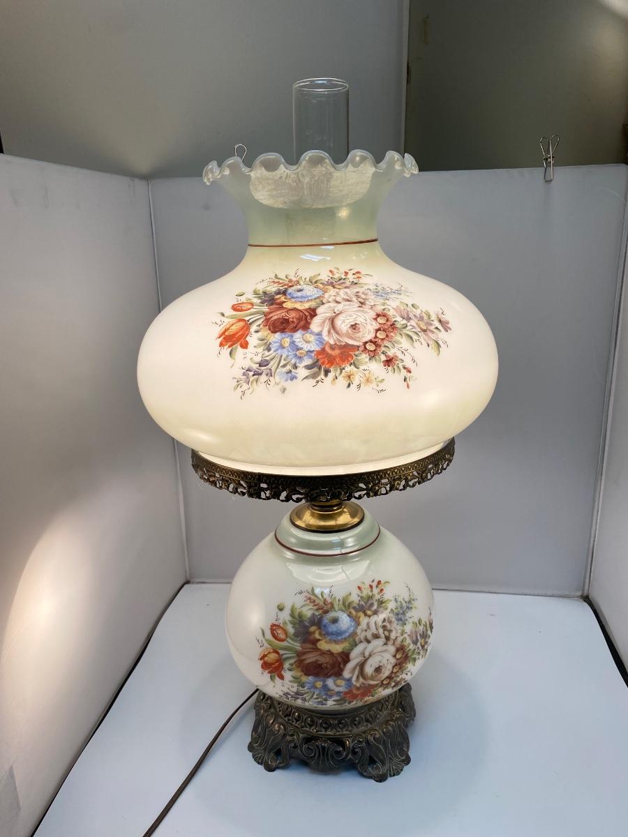 Vintage Floral Country Parlor Ruffle Top Edge Hurricane Table Lamp