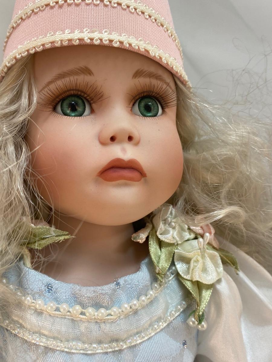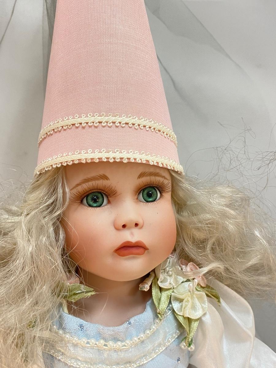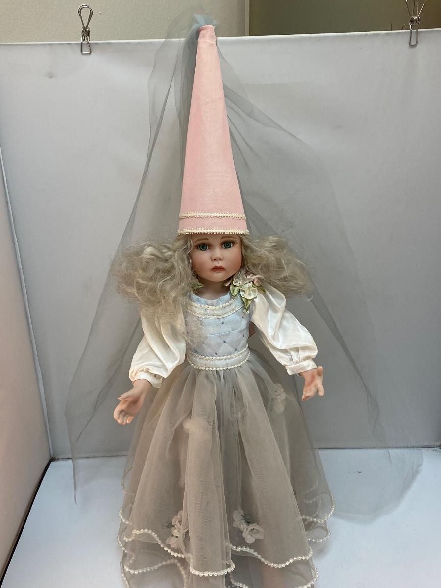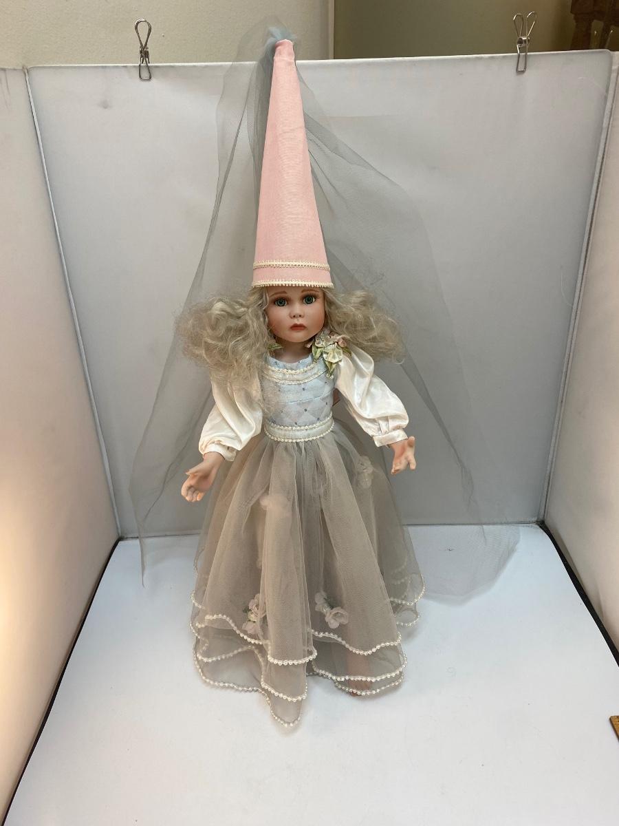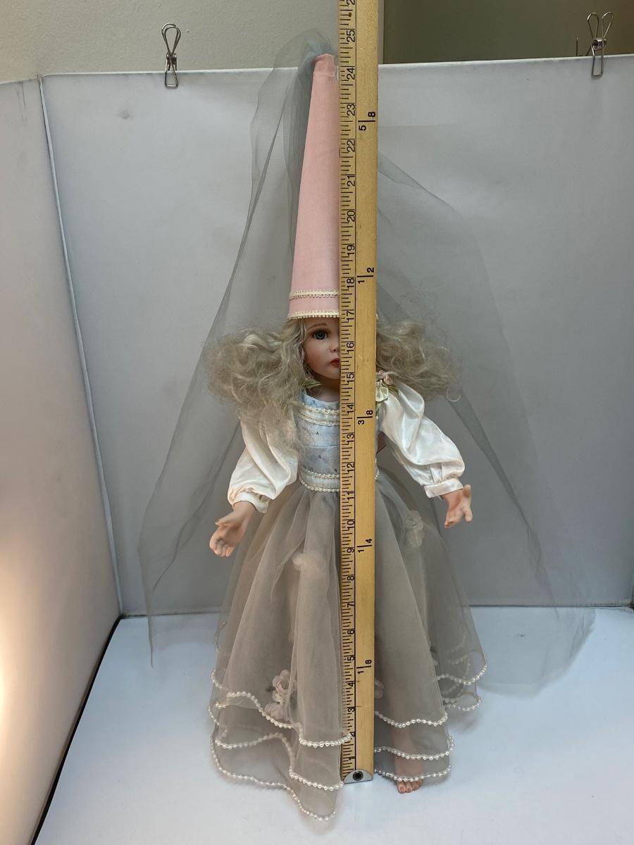 Vintage Porcelain Princess Rapunzel Bisque Soft Body Doll with Stand