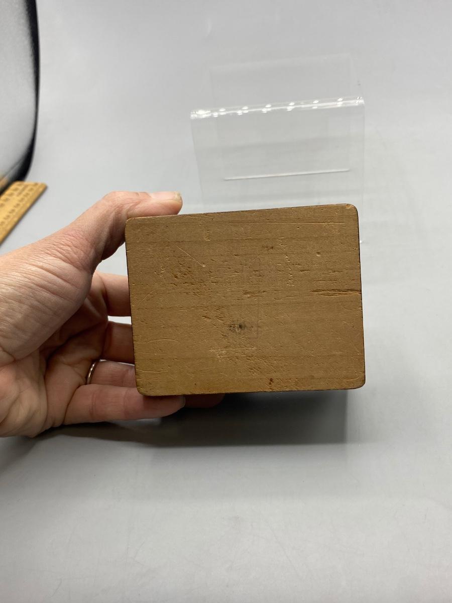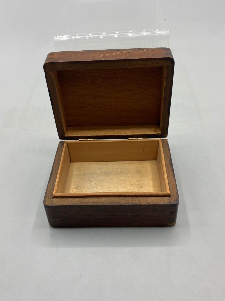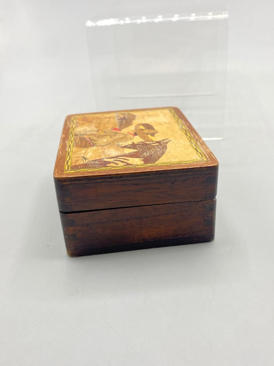 Vintage Small Wood Hinged Lid Trinket Box Man Wearing Sombrero with Horse on Lid. Light wear to the varnish on lid but in good useable condition. 4" size.