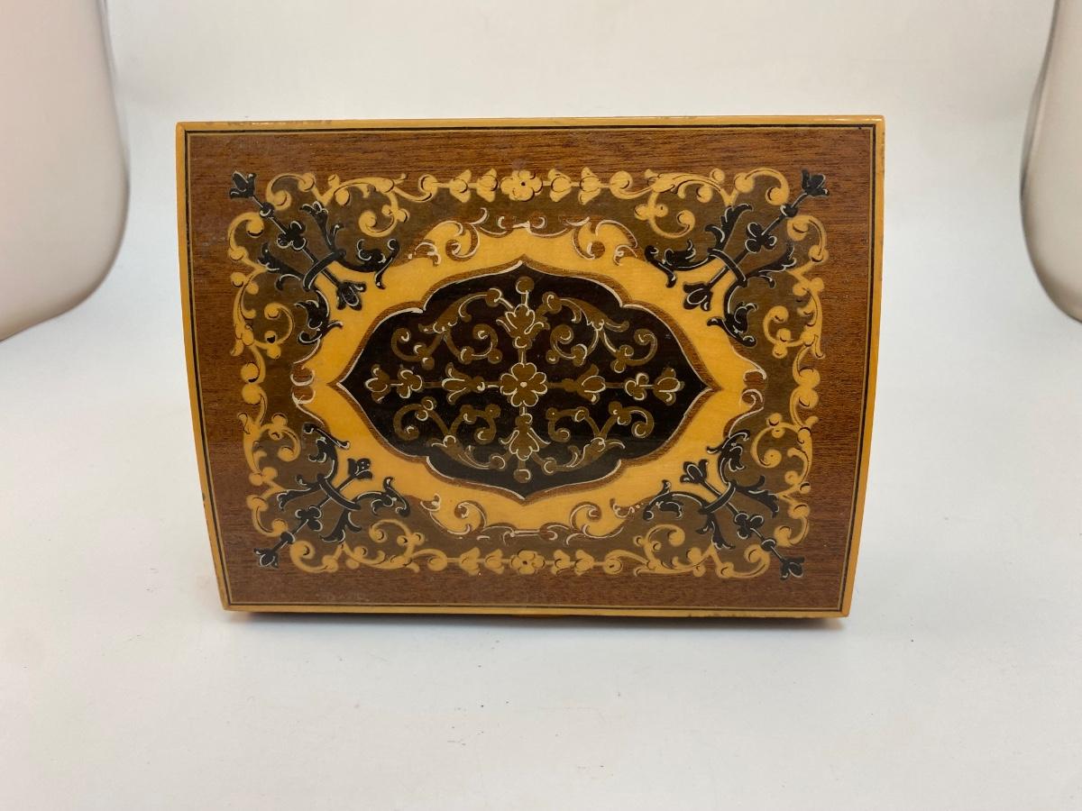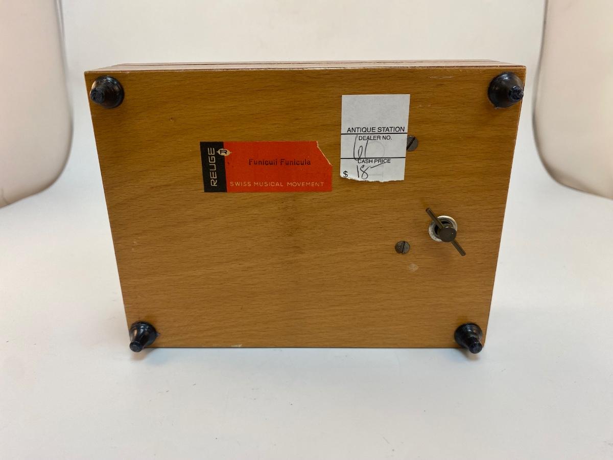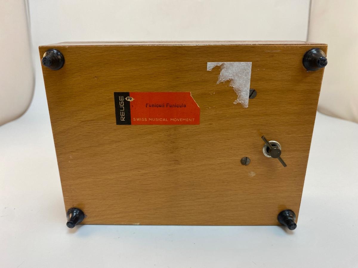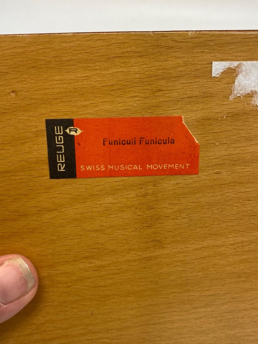 Vintage Wood Inlay Reuge Swiss Movement Music Jewelry Box Funiculi Funicula