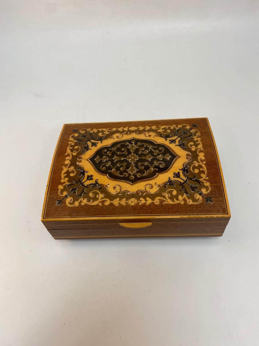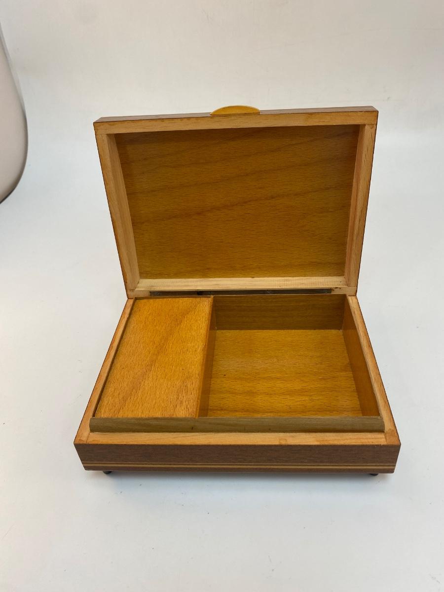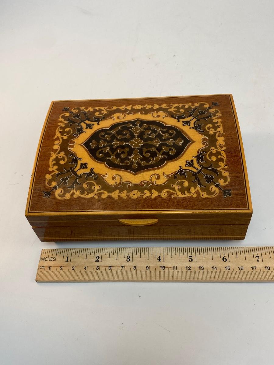 Vintage Wood Inlay Reuge Swiss Movement Music Jewelry Box Funiculi Funicula. In good condition. Works.