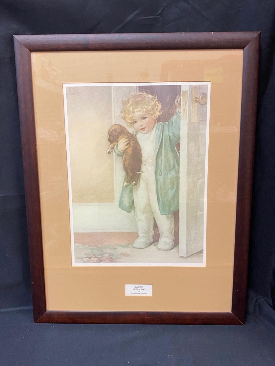 Large Framed Bessie Pease Gutmann Print Good Morning Cute Child with Puppy
