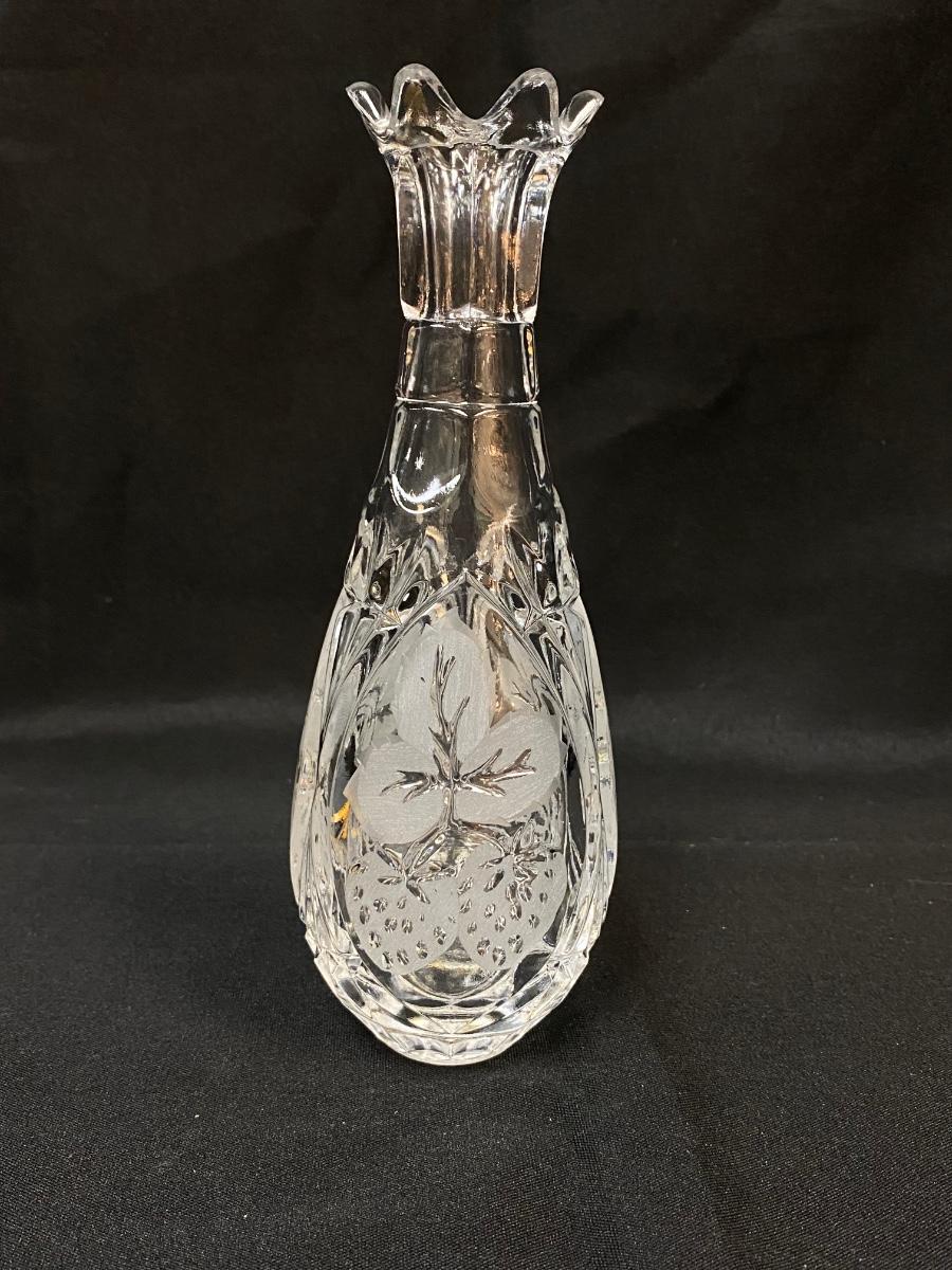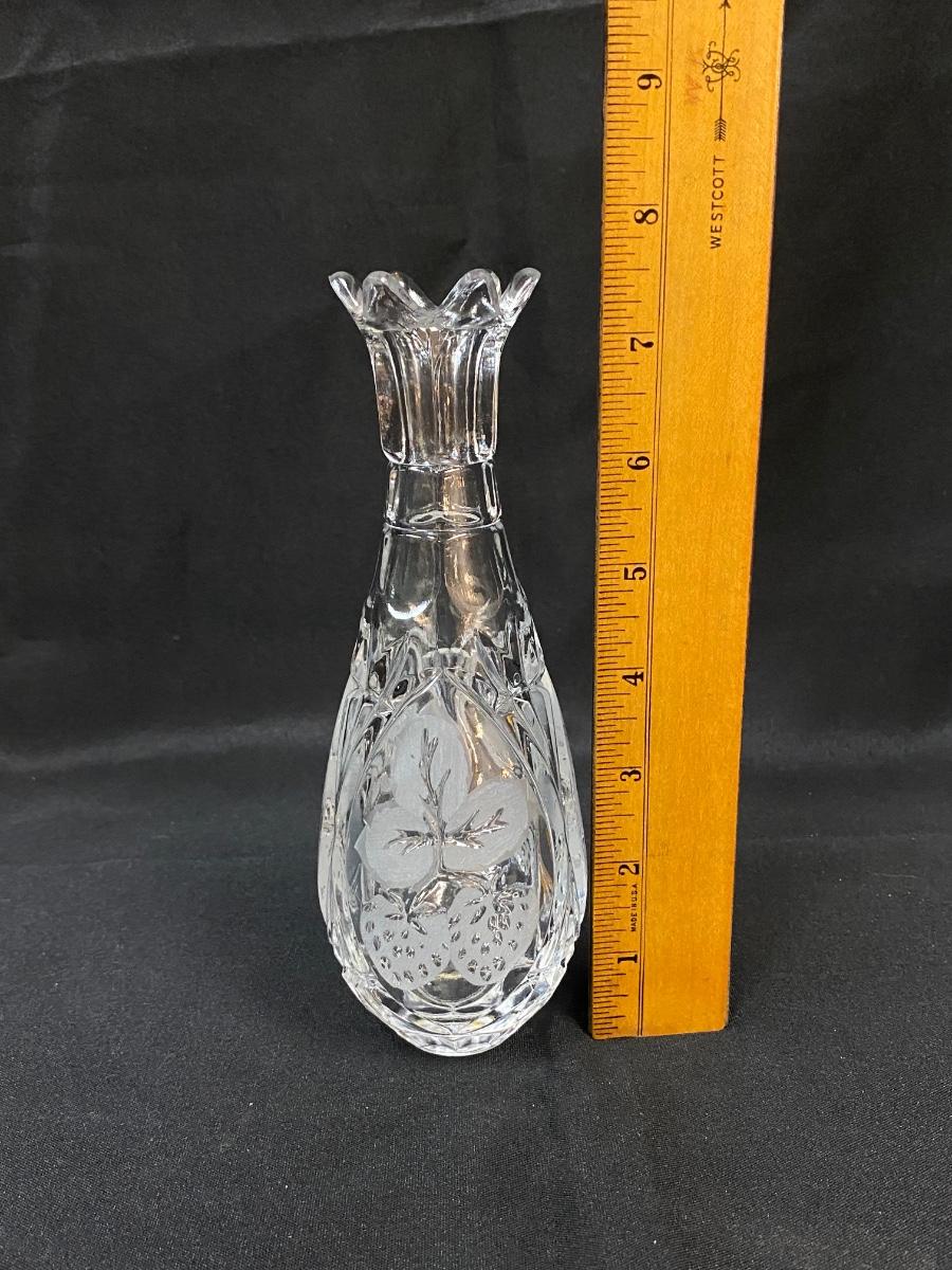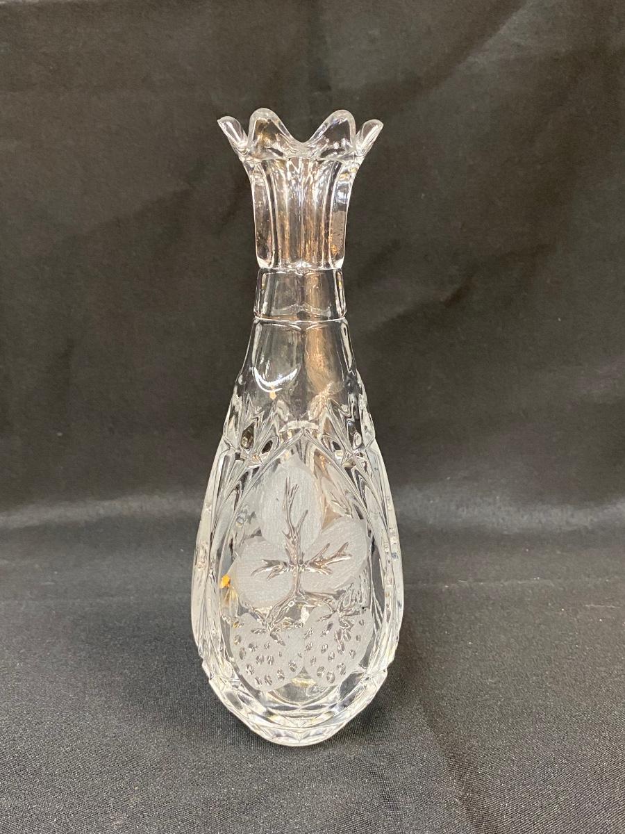 Vintage Heavy Crystal Glass Strawberry Frosted Design Bud Flower Vase