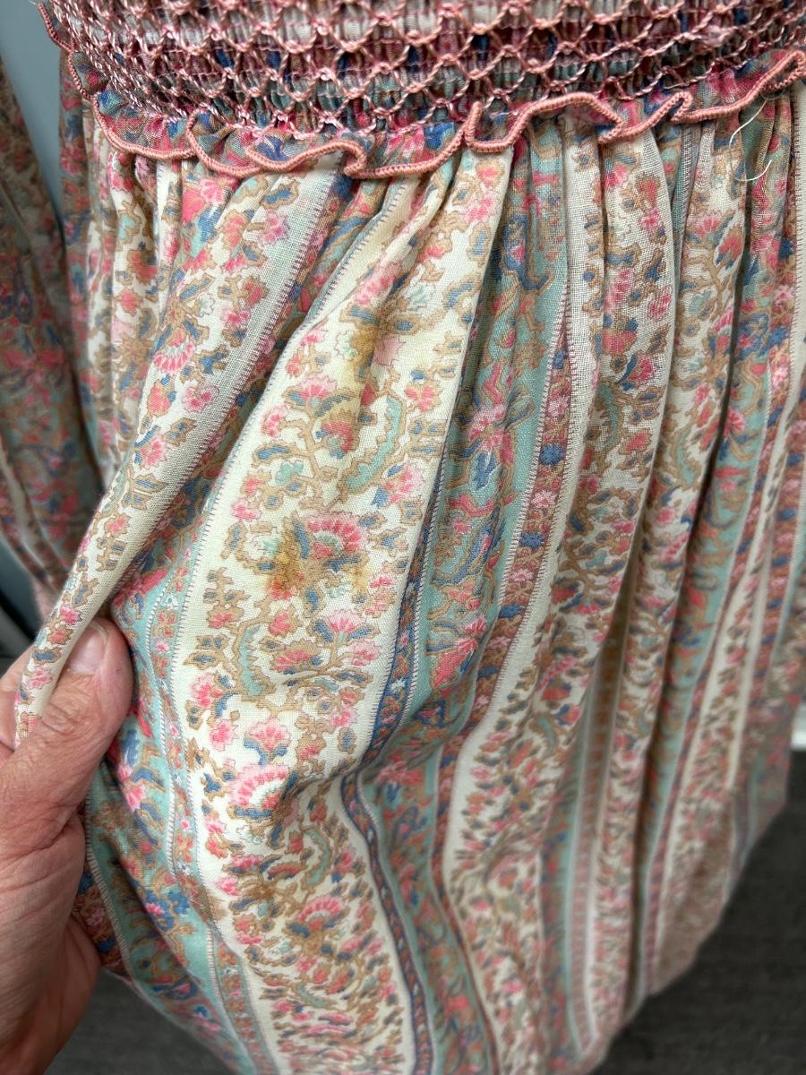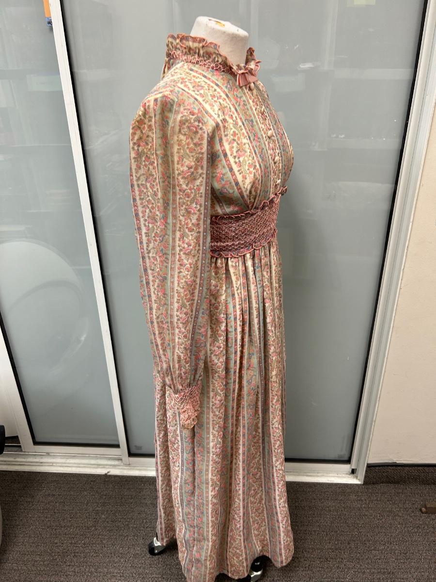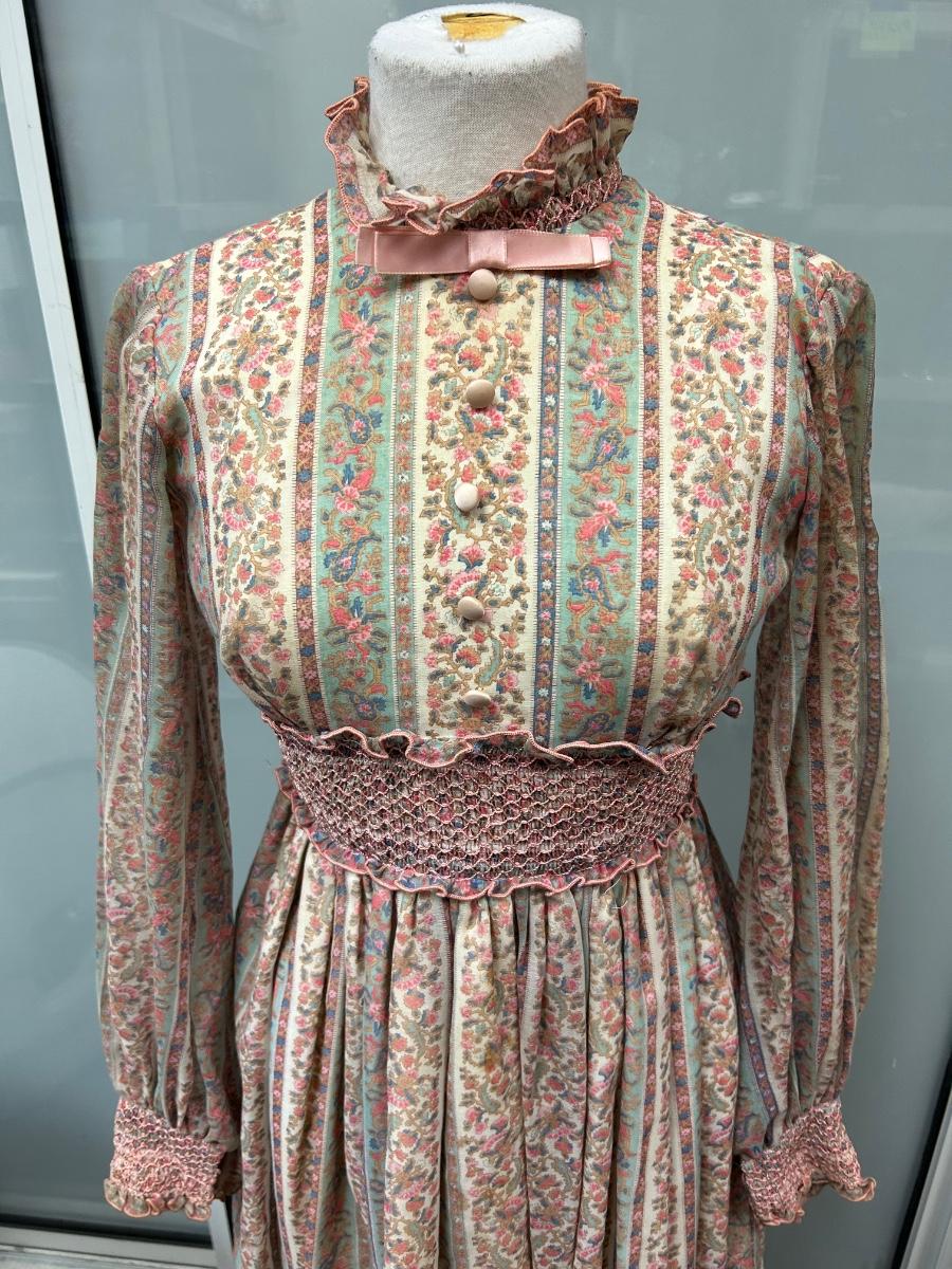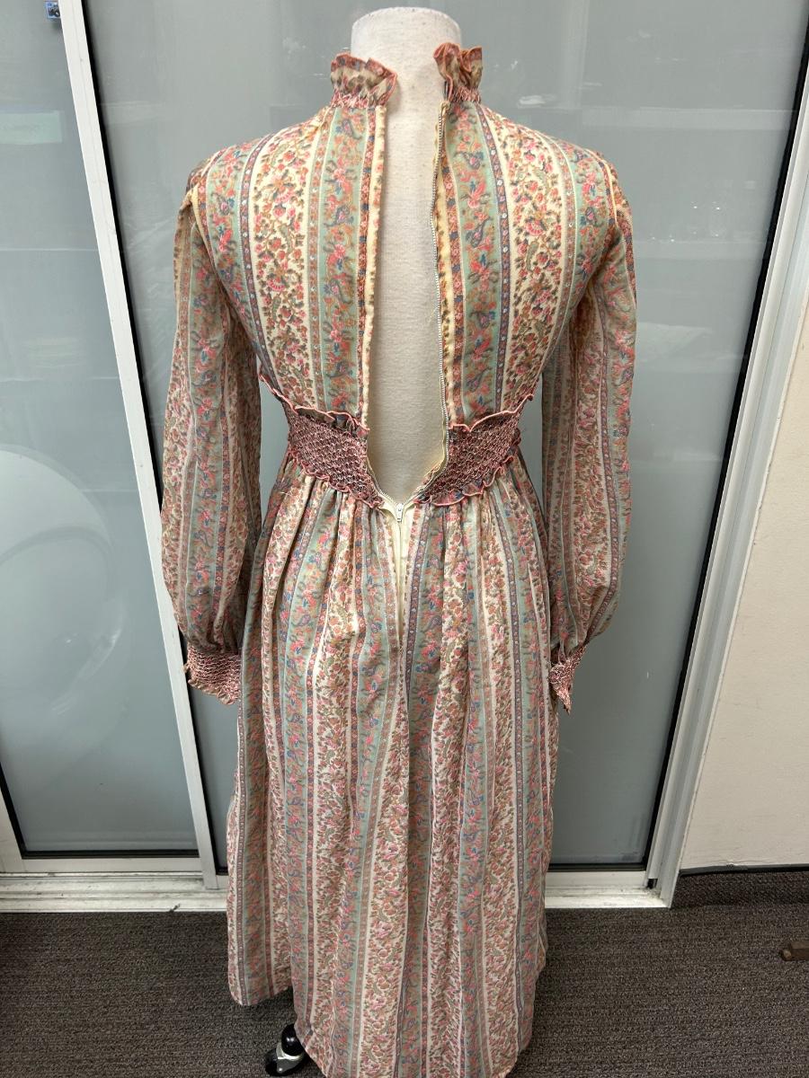 Vintage 1970s Boho Prairie Maxi Dress Floral Print Long Sleeves Size 7