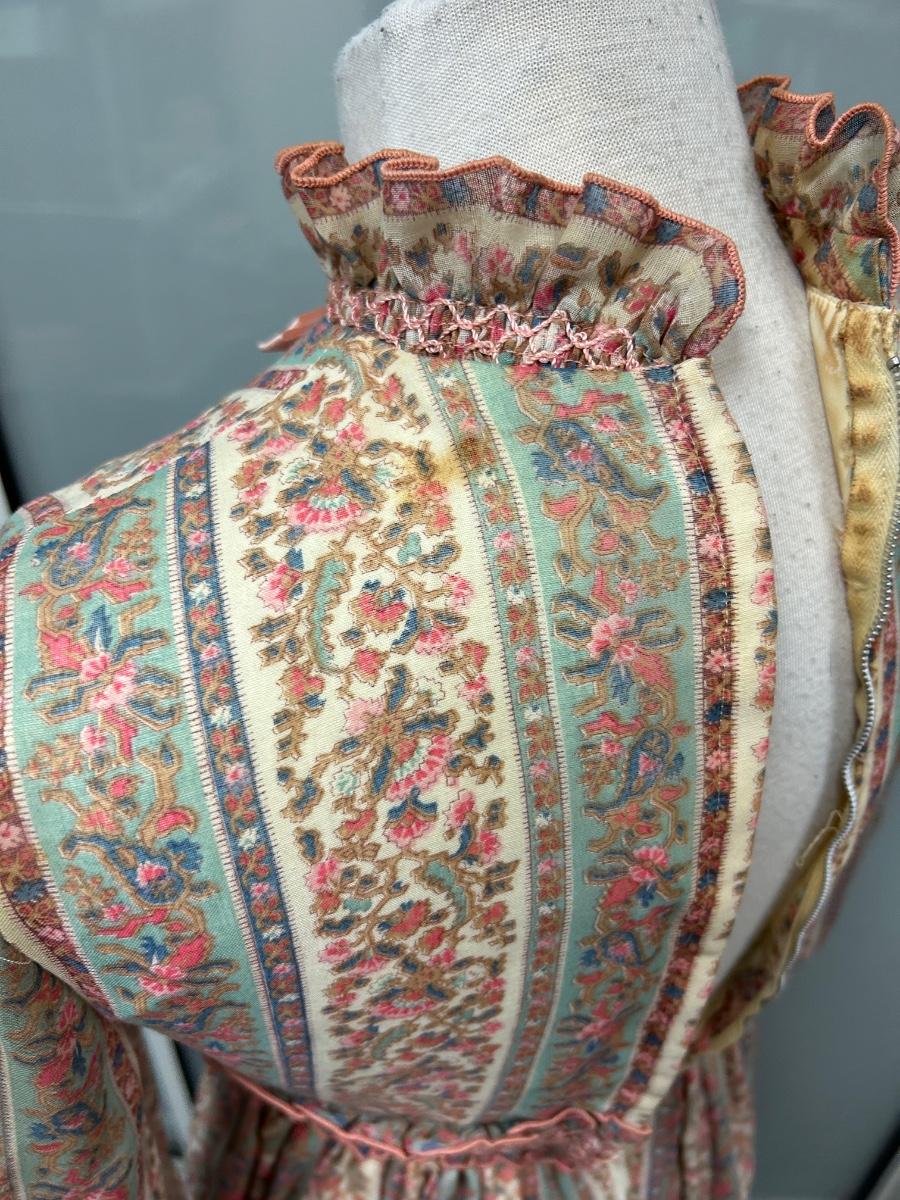 Vintage 1970s Boho Prairie Maxi Dress Floral Print Long Sleeves Size 7. In vintage condition. Some light spots and discoloration, no major stains or holes. Zipper works, snug on mannequin.