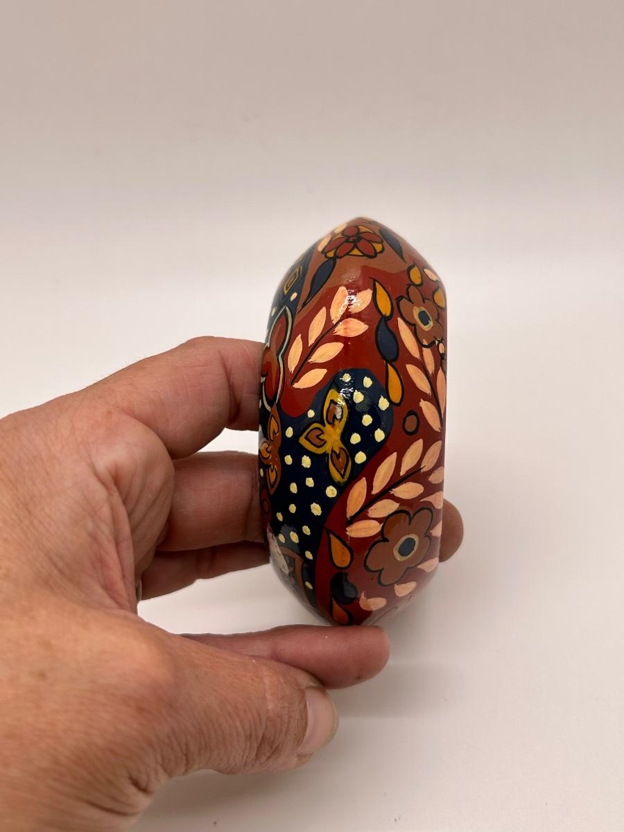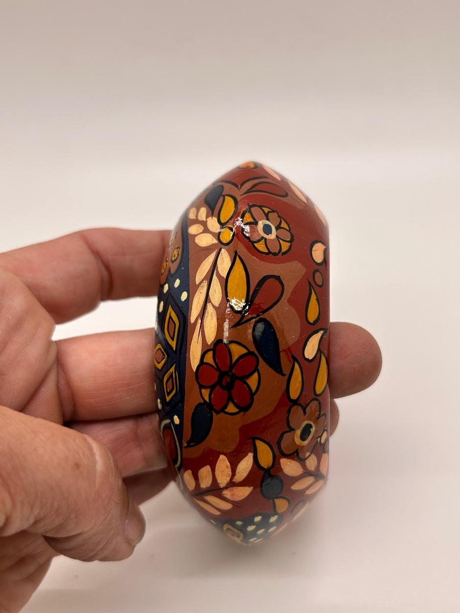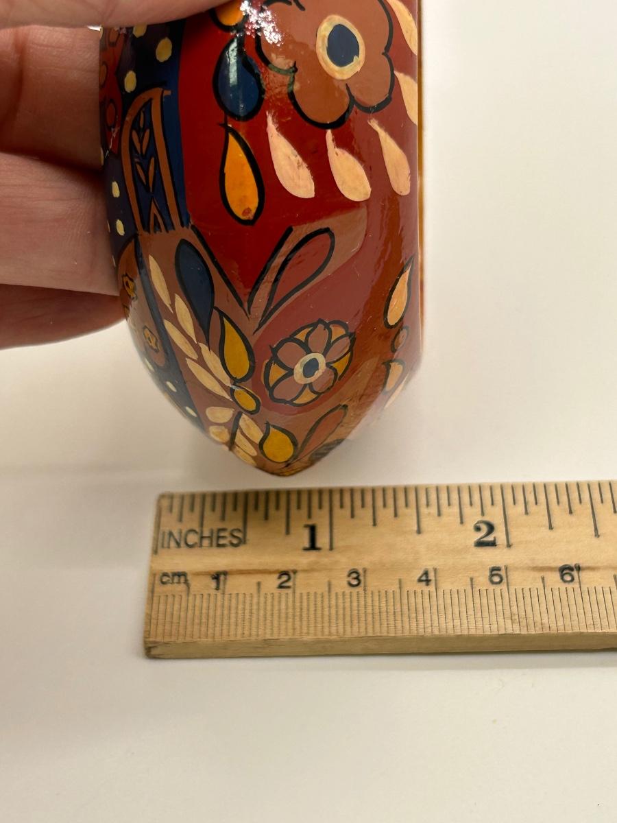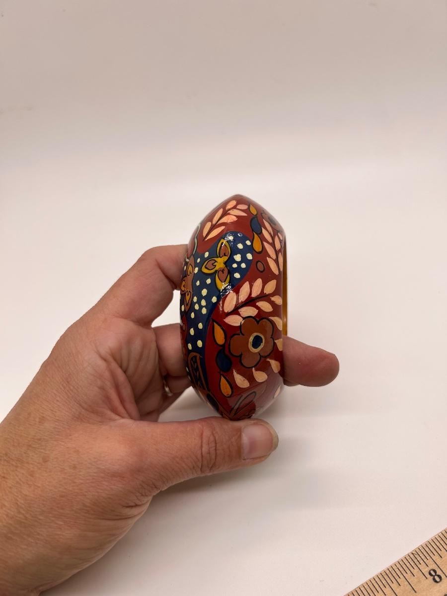 Vintage Retro Hand Painted Wood Chunky Bangle Bracelet Made in India. In good condition. Has original maker label inside. The opening is a bit small.