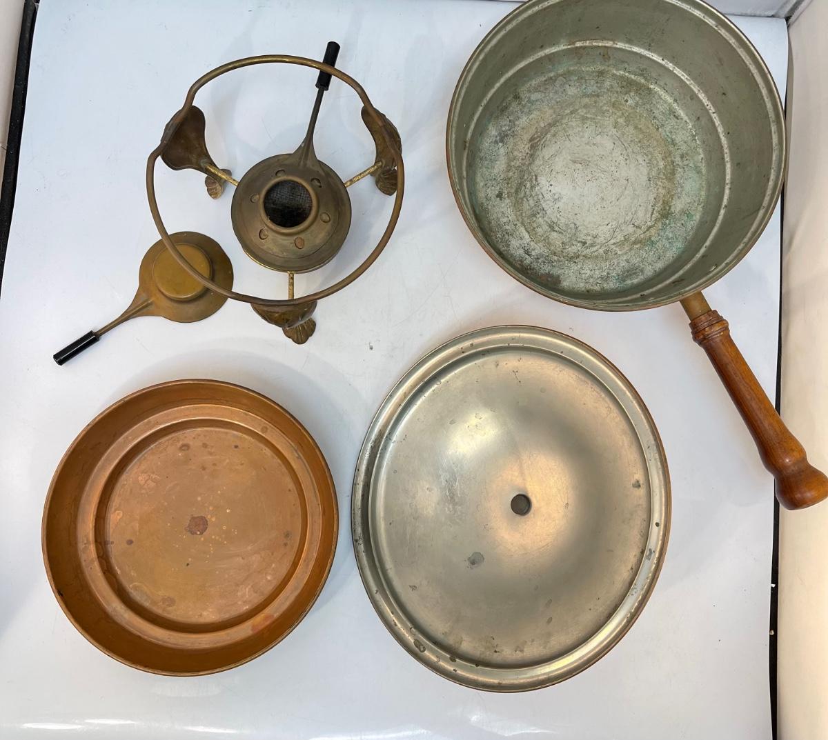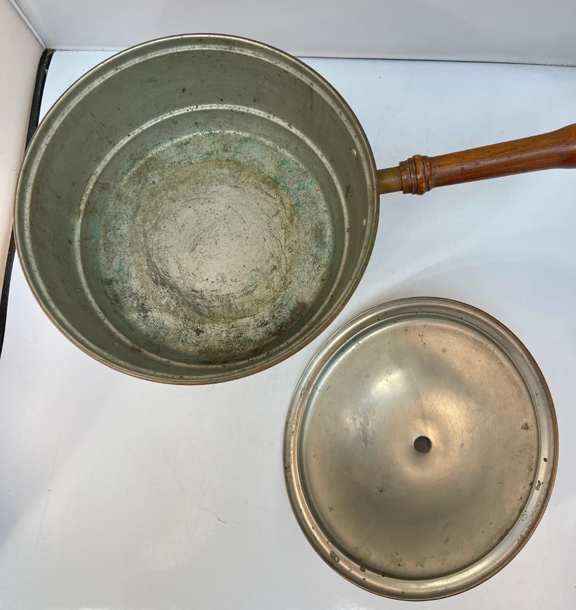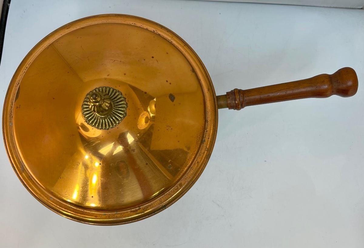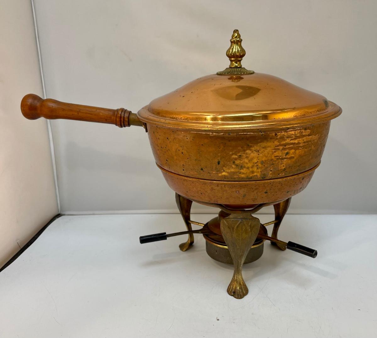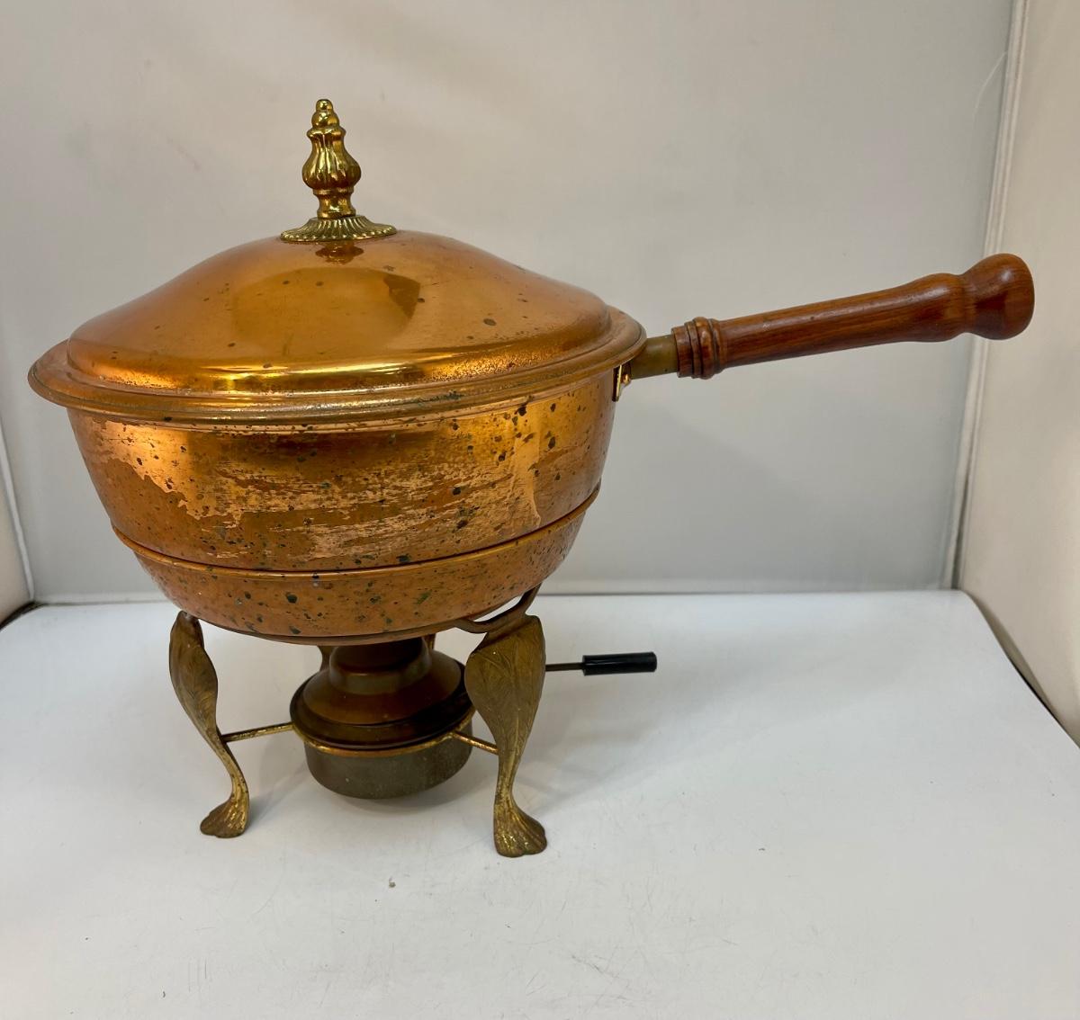 Vintage Copper Chafing Dish Saucepan with Wood Handle