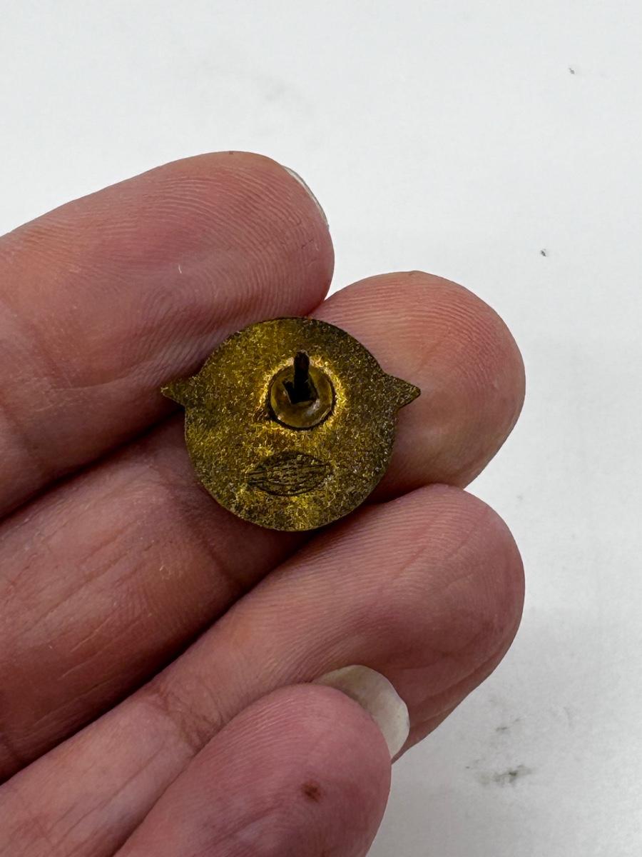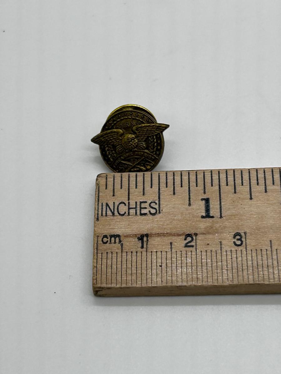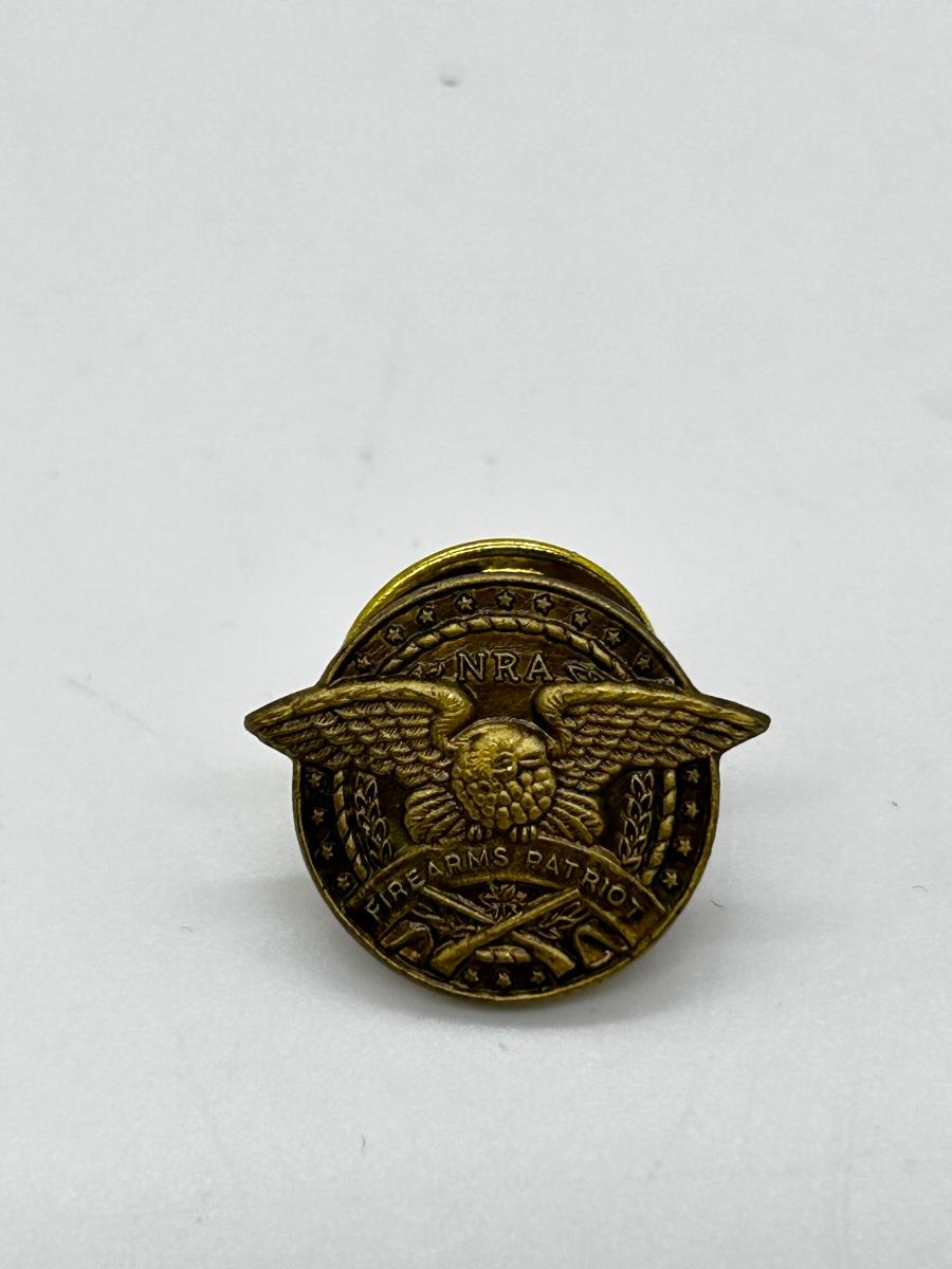 Vintage NRA National Rifle Association Firearms Patriot Lapel Pin Button. Brass tone metal. Small, about 1/2" size.